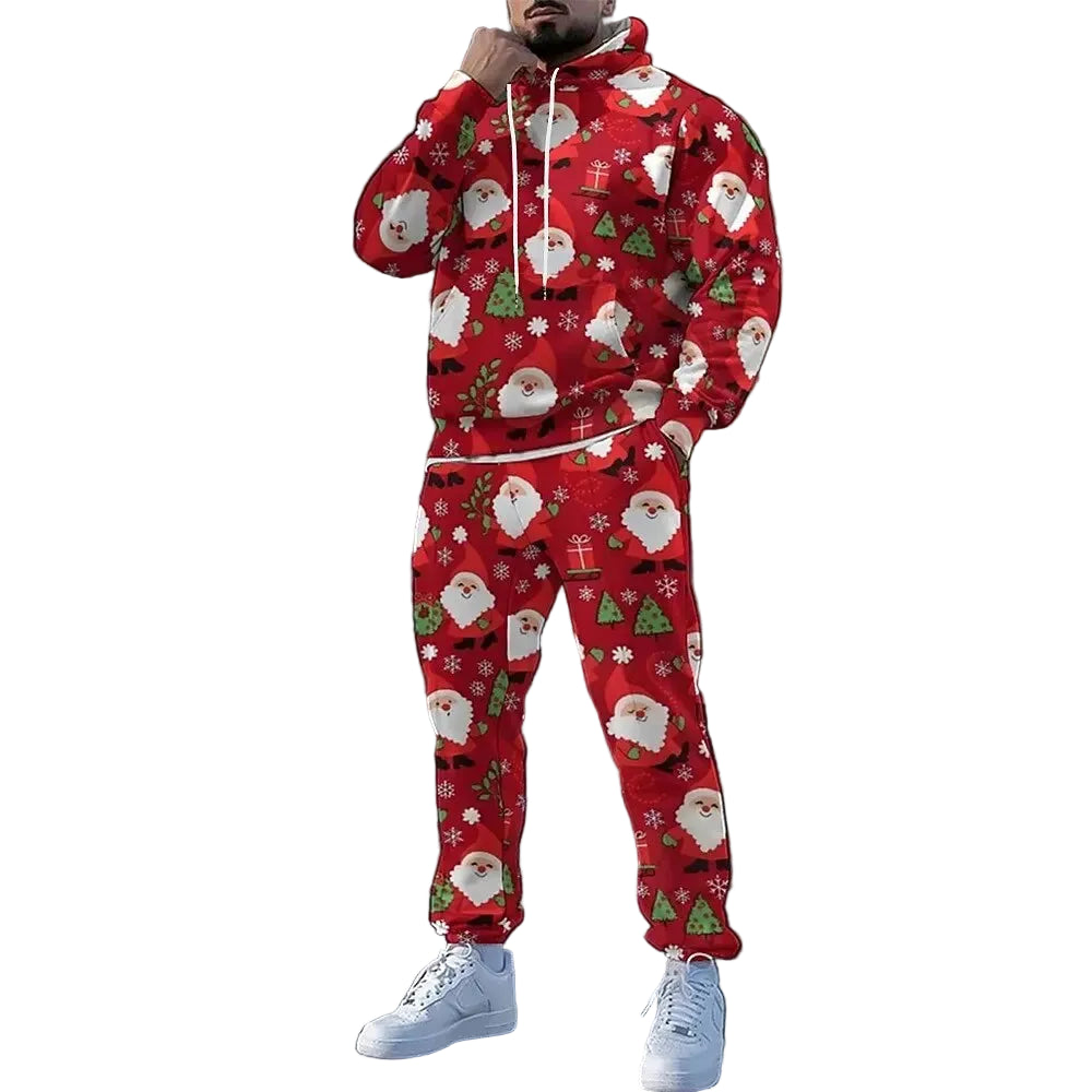 Men’s Christmas Tracksuit Set – Santa Claus 3D Print Hoodie & Sweatpants, Casual Holiday Outfit, Autumn Winter X’mas Clothing