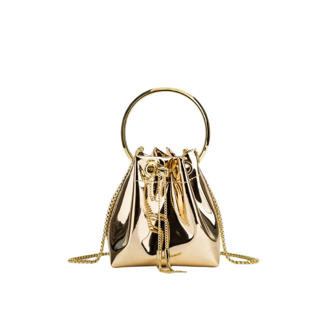 Women's K-Style Trend Rhinestone Bucket Bag - Full Diamond Chain Shoulder Crossbody with Drawstring