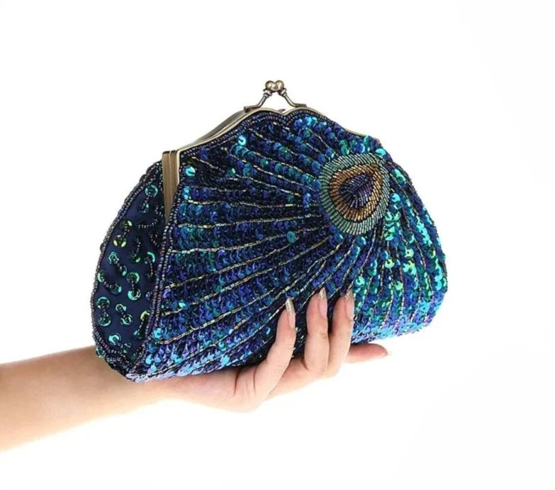 New Retro Beaded Sequined Women's Evening Clutch Bag: Peacock Cheongsam Luxury Designer Handbags, Clutch Purses, Crossbody Handbags