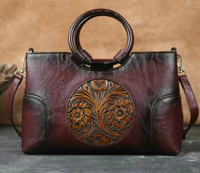 Women's Handbags: High-Quality Leather Shoulder Bag for Women, New Chinese Style, Handmade Embossed Female Handbags