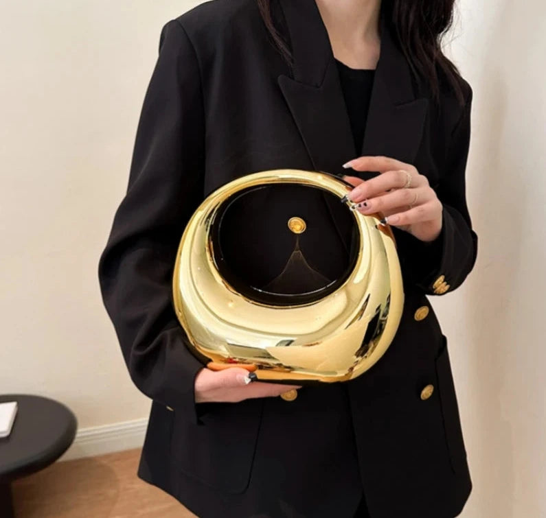 Golden Evening Handbag for Women: PVC Wrist Bag for Dinner Party Wedding, Round Handle Clutch Purse, 2024 Luxury Designer Handbag
