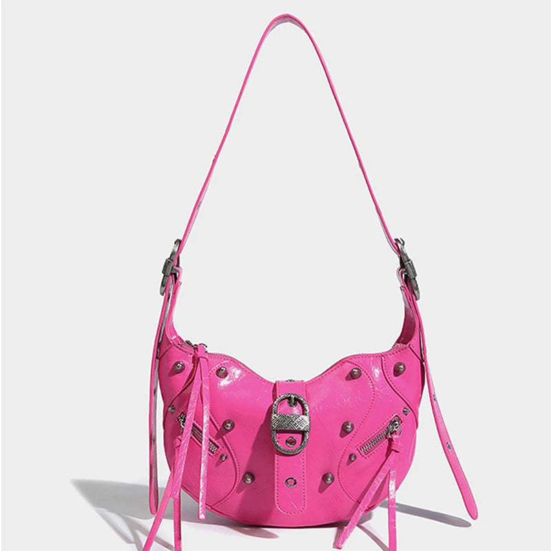 Moto & Biker Saddle Bags for Women: Luxury Designer Handbags and Purses. PU Rivet Decorated Shoulder Crossbody Bag.