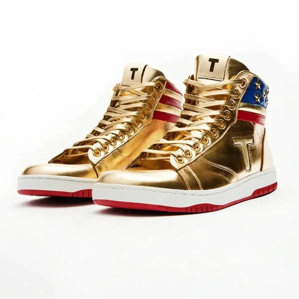 Gold Trump 2025 MAGA Sneakers – Men's & Women's Basketball & Casual Boots | Never Surrender High-Top Road Shoes, Big Sizes 47-48