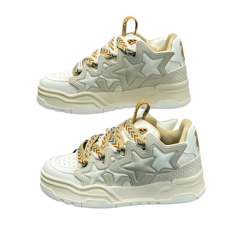 Off-White Star Platform Sneakers – Trendy Casual Shoes for Men & Women | Niche Couple Streetwear Trainers | National Tide Board-Style Fashion