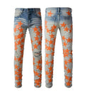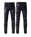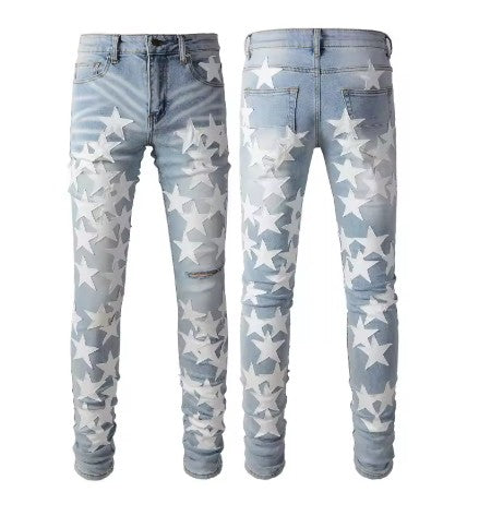 Men’s High Street Blue Star Embroidered Jeans – Slim Fit Denim Pants, Stylish Autumn Fashion for Vaqueros Hombre