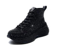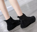 Shiny Rhinestone Thick Sole Ankle Boots, perfect for adding sparkle to your autumn and winter outfits. Designed for both comfort and fashion, these short booties feature a thick platform sole, ensuring both height and stability, while the plush insole keeps your feet warm throughout the colder months.