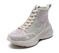 Shiny Rhinestone Thick Sole Ankle Boots - Women's Short Autumn/Winter Booties