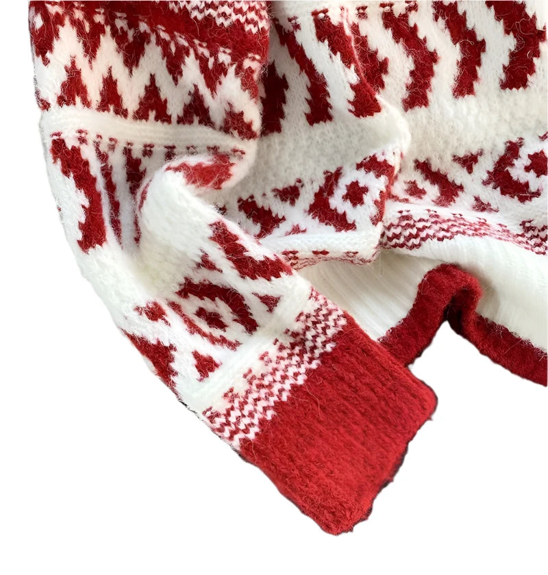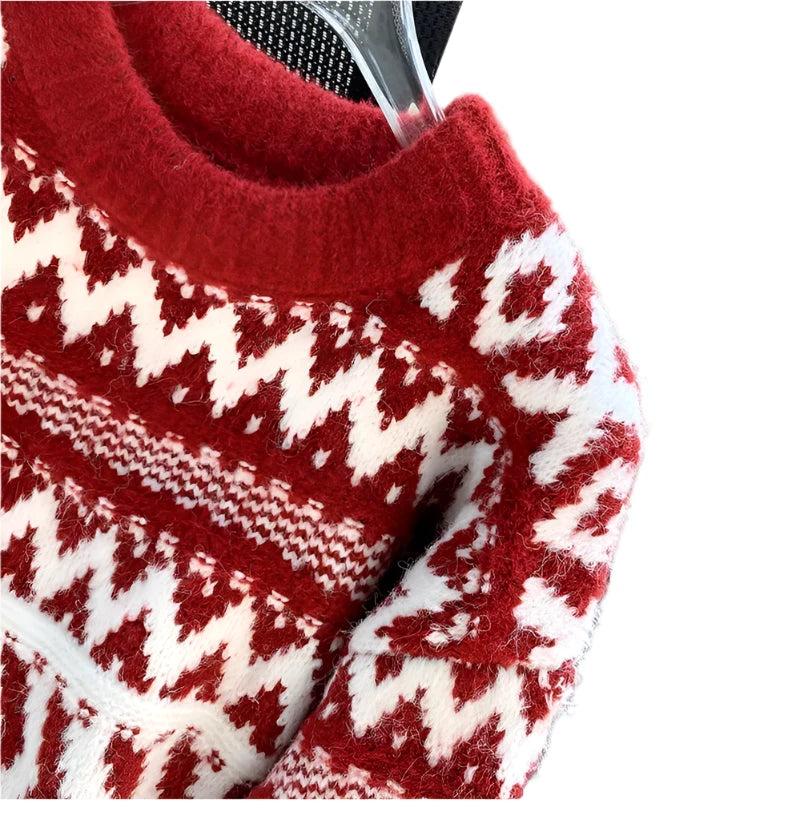Celebrate the festive season in style with this women's red Christmas sweater! Featuring a cozy thickened design, playful puff sleeves, and a retro-inspired loose fit, this sweater is perfect for staying warm and fashionable during autumn and winter. Its charming applique details and vibrant red color make it a must-have for holiday gatherings and casual outings.
