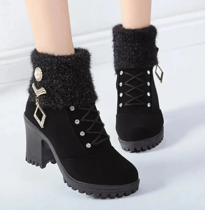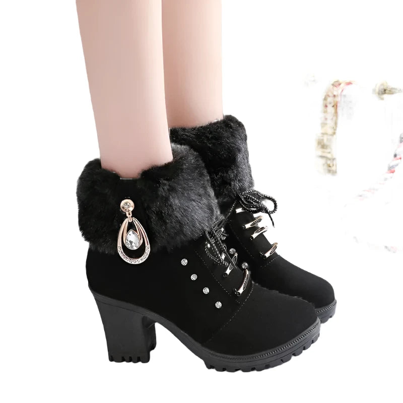 2024 Women's Waterproof Snow Boots – Warm Fur, Thick Heel, Round Toe Winter Outdoor Short Boots