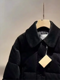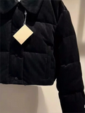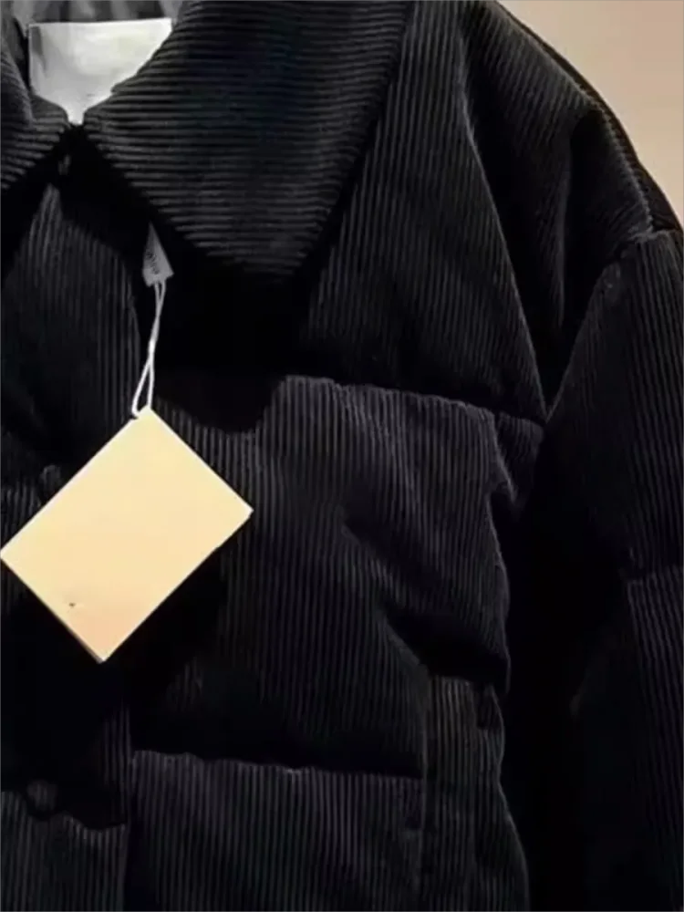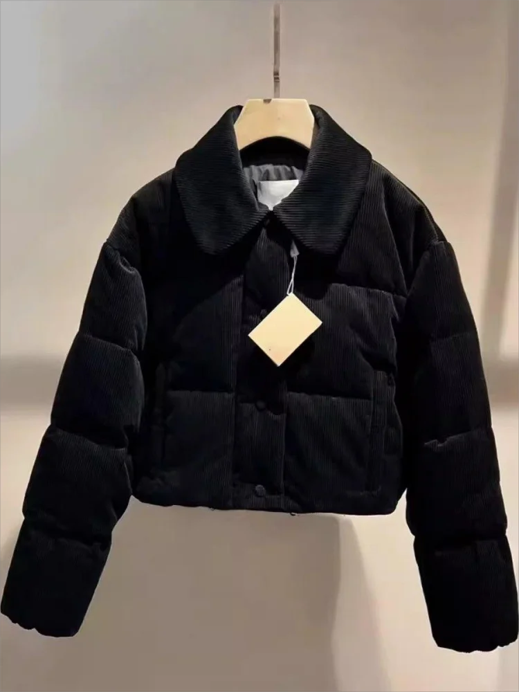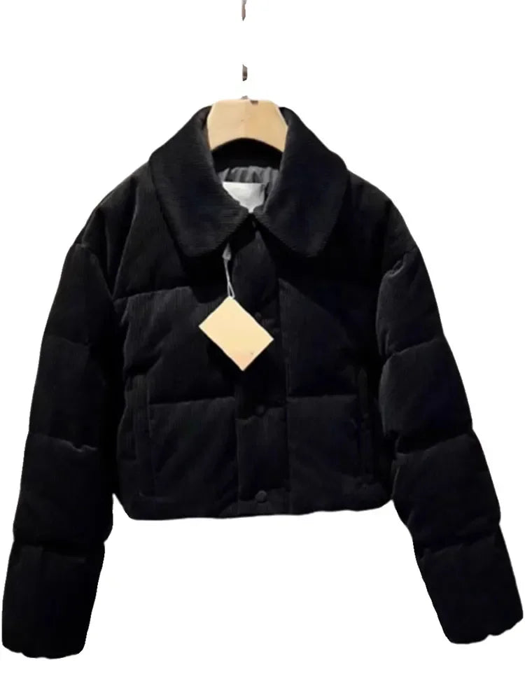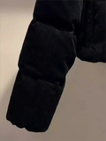 2024 Women's Winter Thick Corduroy Parka – Warm Cotton-Padded Casual Black Short Jacket, Loose Fit Outerwear