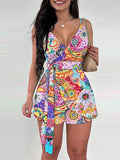 2024 Spring/Summer Floral Two-Piece Set - Women’s Slim Fit V-Neck Lace-Up Sleeveless Top & Shorts