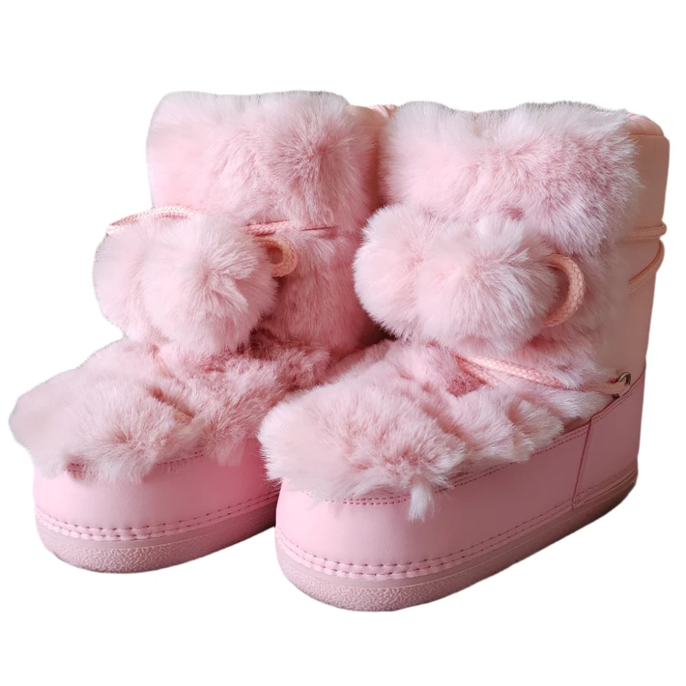 2024 Women's Fluffy Fur Snow Boots – Waterproof Lace-Up Ankle Ski Boots with Platform