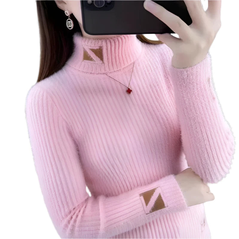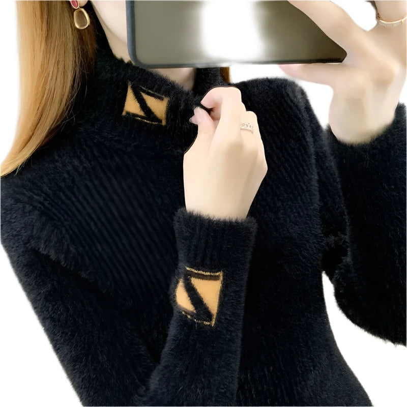 2025 Women's Winter Chic Jacquard Knit Sweater - Slim High Collar Casual Pullover Jumper