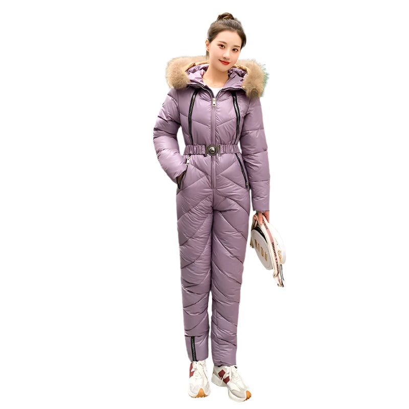 Women's -30°C One-Piece Snowsuit Jumpsuit – Ultimate Winter Protection for Skiing, Snowboarding, and Outdoor Activities