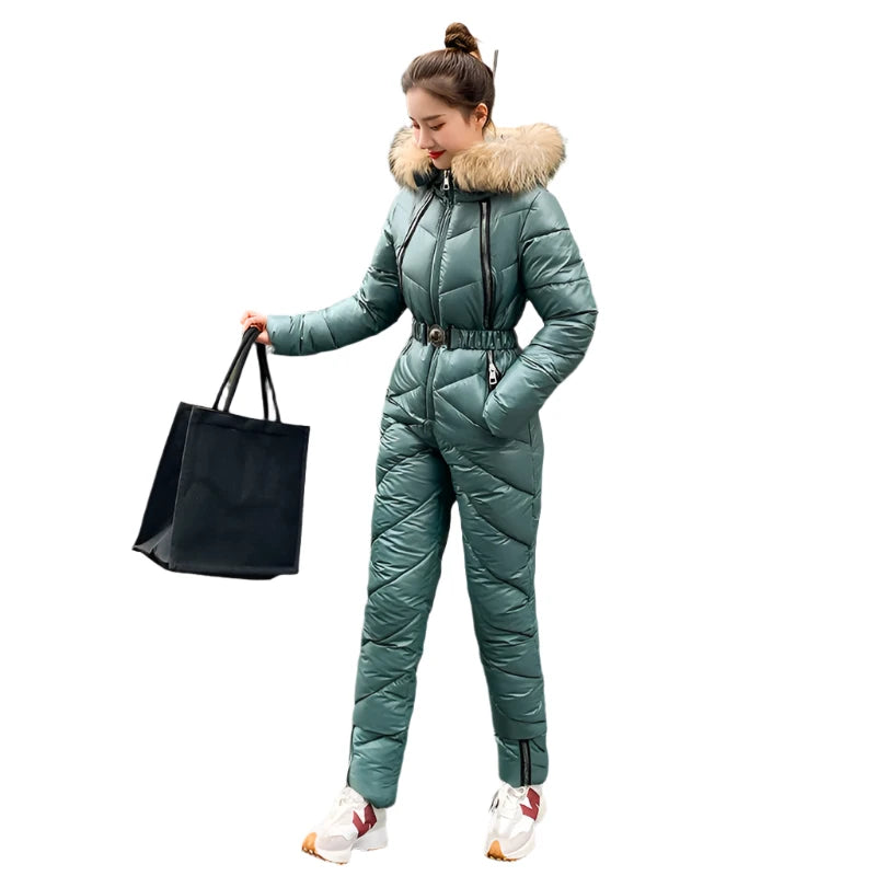 Brave the cold in style with this -30°C snowsuit designed for winter sports and outdoor adventures. This women’s one-piece jumpsuit combines warmth, comfort, and style, perfect for those who love staying active in winter conditions. Made from a durable blend of polyester and cotton, this thick, high-waisted bodysuit provides excellent insulation and a streamlined silhouette.