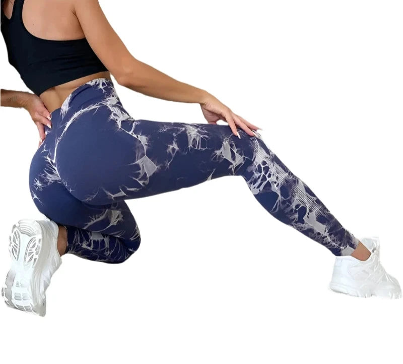 47-Color Tie-Dye Marbled Yoga Pants – High-Waist Seamless Fitness Leggings for Women