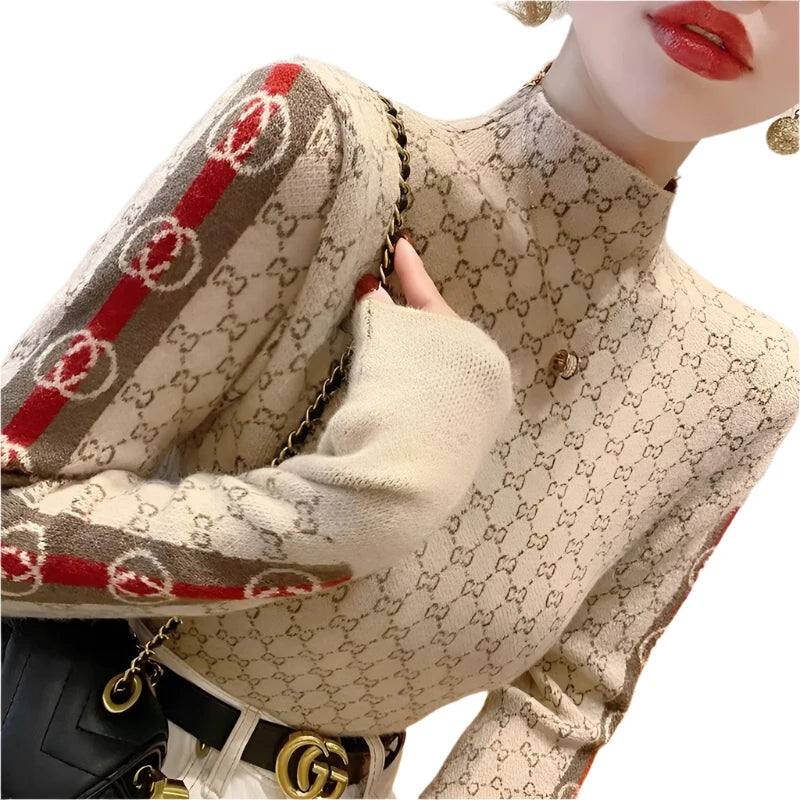 Women's Chic Letter Jacquard Sweater, designed for autumn and winter. This slim-fit pullover combines fashion and comfort, making it a versatile addition to your wardrobe.