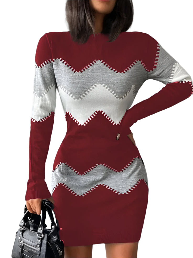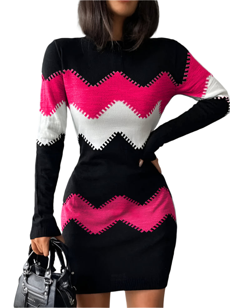 Autumn Winter Women’s Fashion Print Slim Bodycon Mini Dress. This stunning bodycon mini dress is designed to enhance your curves and offer a stylish, chic look for any occasion. It has a flattering O-neckline, long sleeves, and a bold print pattern and is perfect for the autumn and winter seasons. Whether you're dressing for the office or an evening event, this slim-fit, package-hip dress will elevate your wardrobe with its elegant silhouette and modern design.