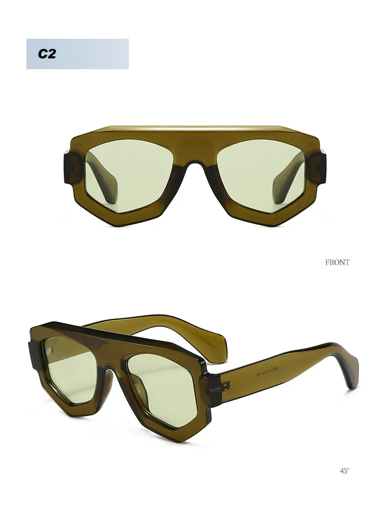 Fashion irregular square sunglasses, designed for women and men. Featuring a retro green frame and UV400 lenses, they provide full protection from harmful rays while making a bold fashion statement. Perfect for beach outings, travel, shopping, parties, cycling, and daily wear, these shades combine comfort, durability, and standout style.