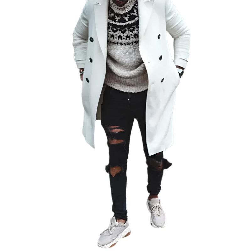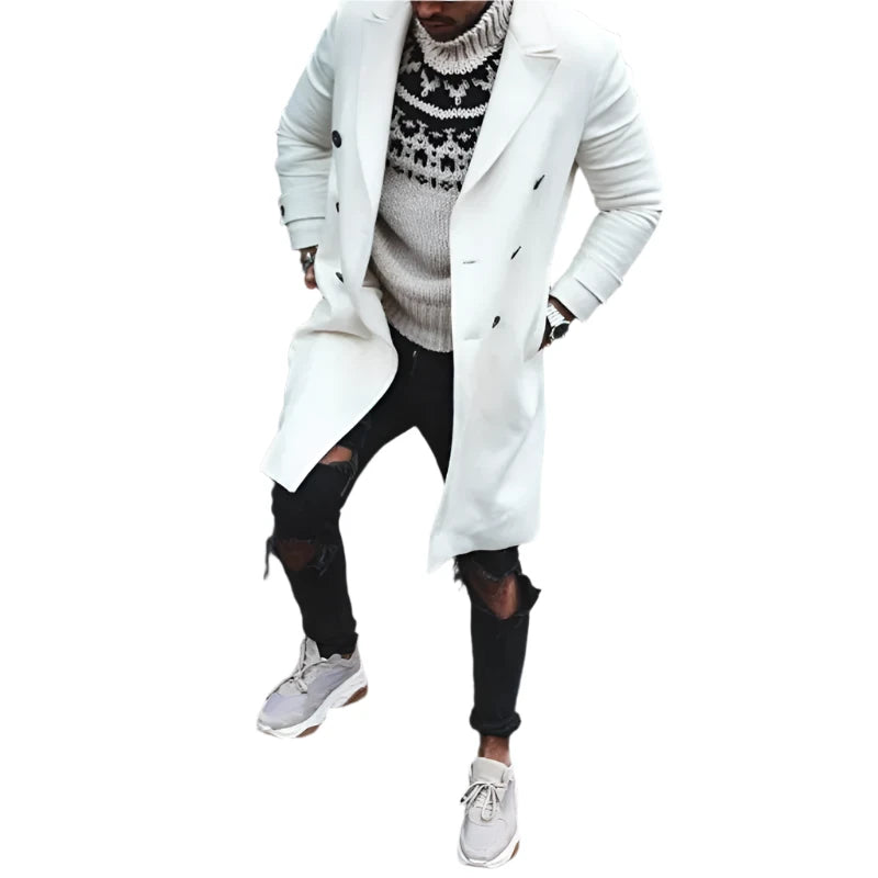 Men's Fashion Woolen Coat - Solid Casual Lapel Double-Breasted Overcoat with Long Sleeves