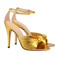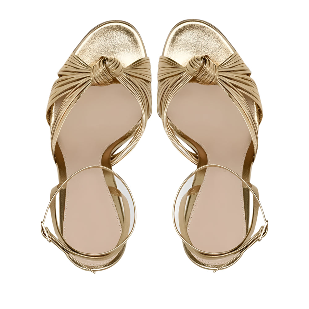 Gold Stiletto Heel Sandals for Women. Designed with a flattering cross-strap design, round toe, and ultra-sleek ankle slingback, these heels offer a perfect blend of glamour, comfort, and confidence. Whether you're hitting the dance floor or strutting into an event, they’re your go-to choice for bold style—now available in sizes 35 to 46 for all fierce fashionistas.