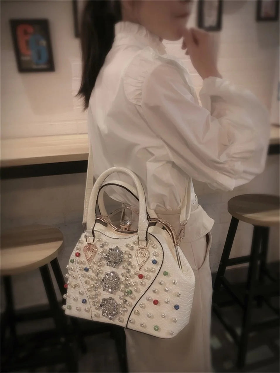 Upgrade your style with our High-grade Rhinestone Handbag! Embrace a new personality with this fashion-forward piece. Perfect for carrying your essentials in style, whether as a diamond ladies handbag, shoulder bag, or messenger shell bag. Elevate your look today!