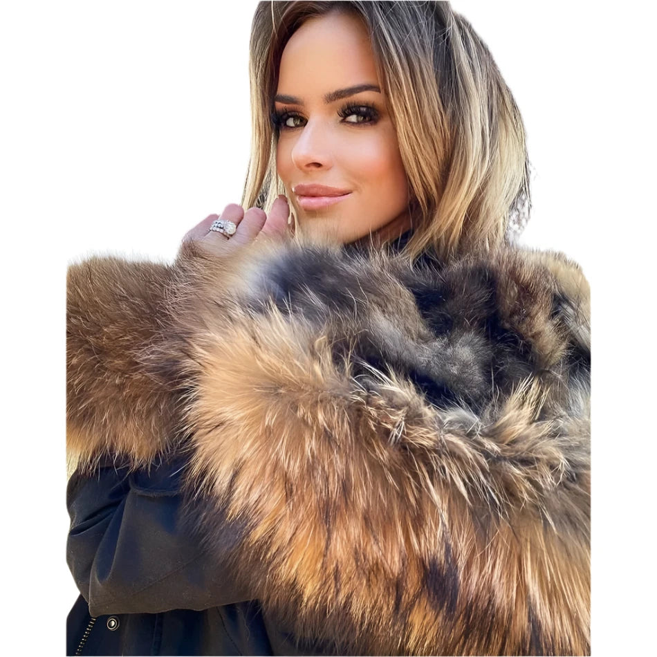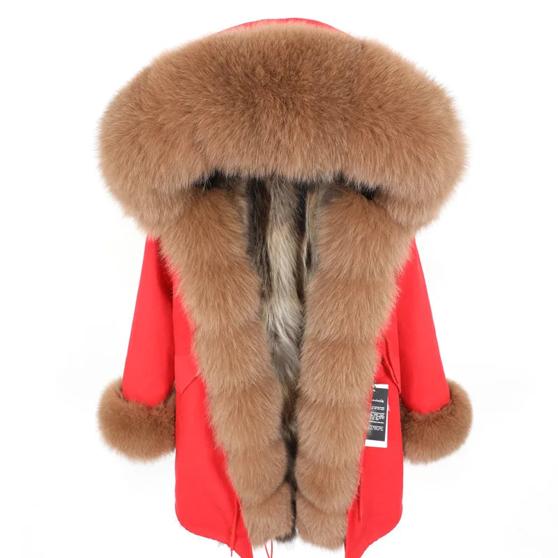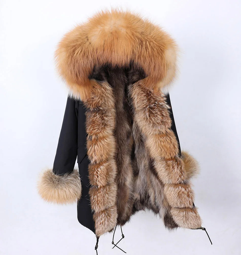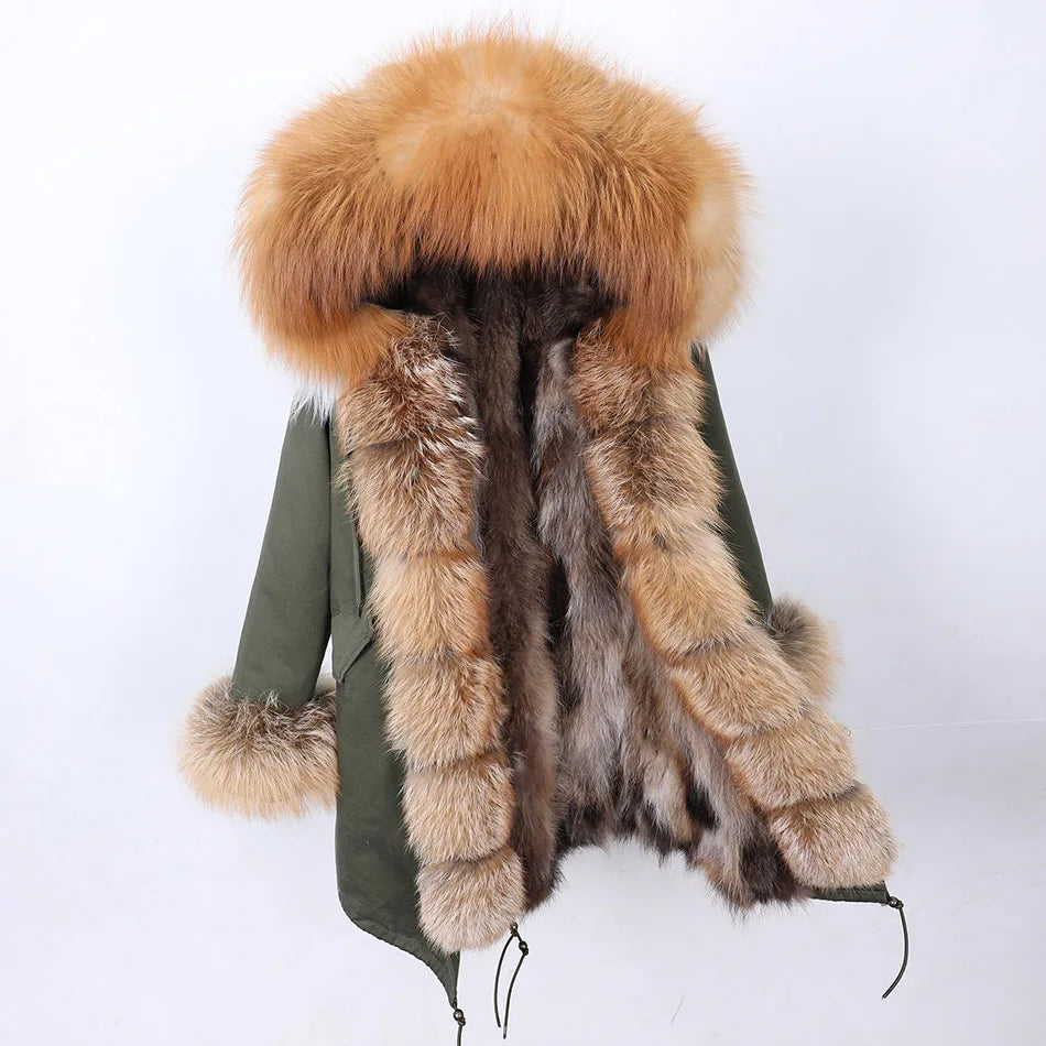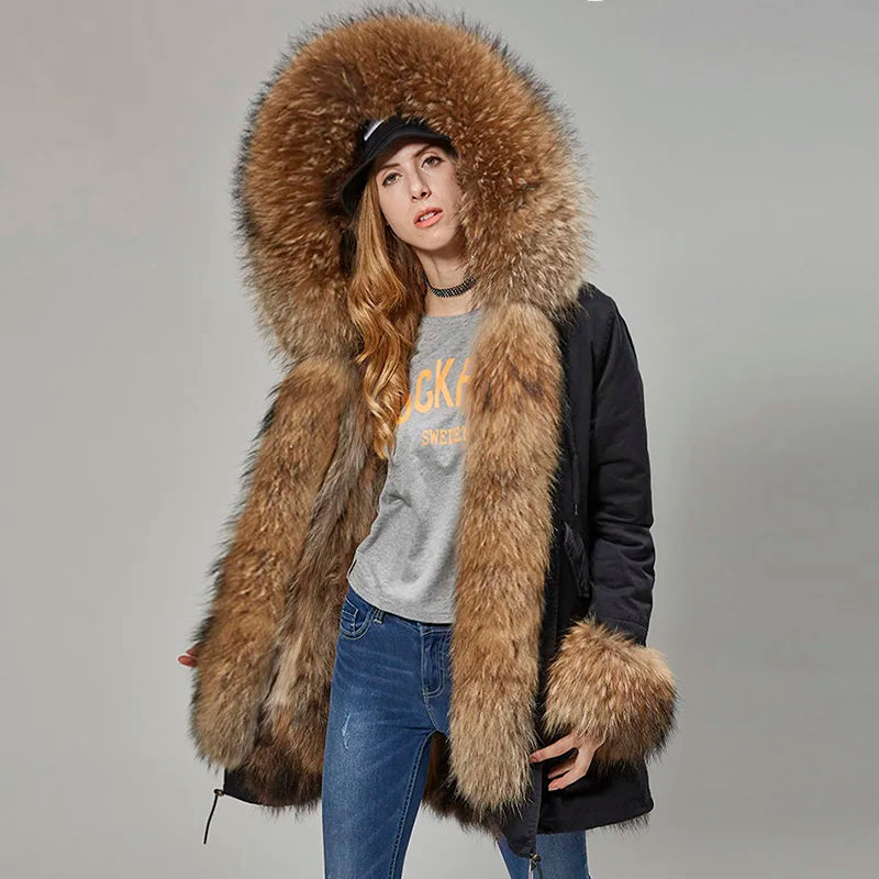 Women's Thick Fur Winter Coat with Real Fur Lining - Long Fox Fur & Raccoon Fur Collar | Hooded & Waterproof