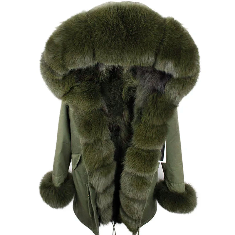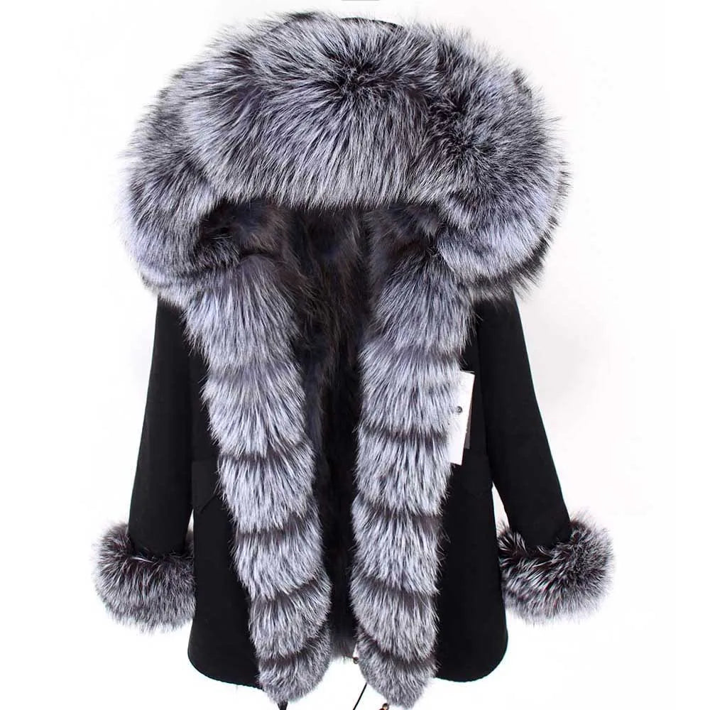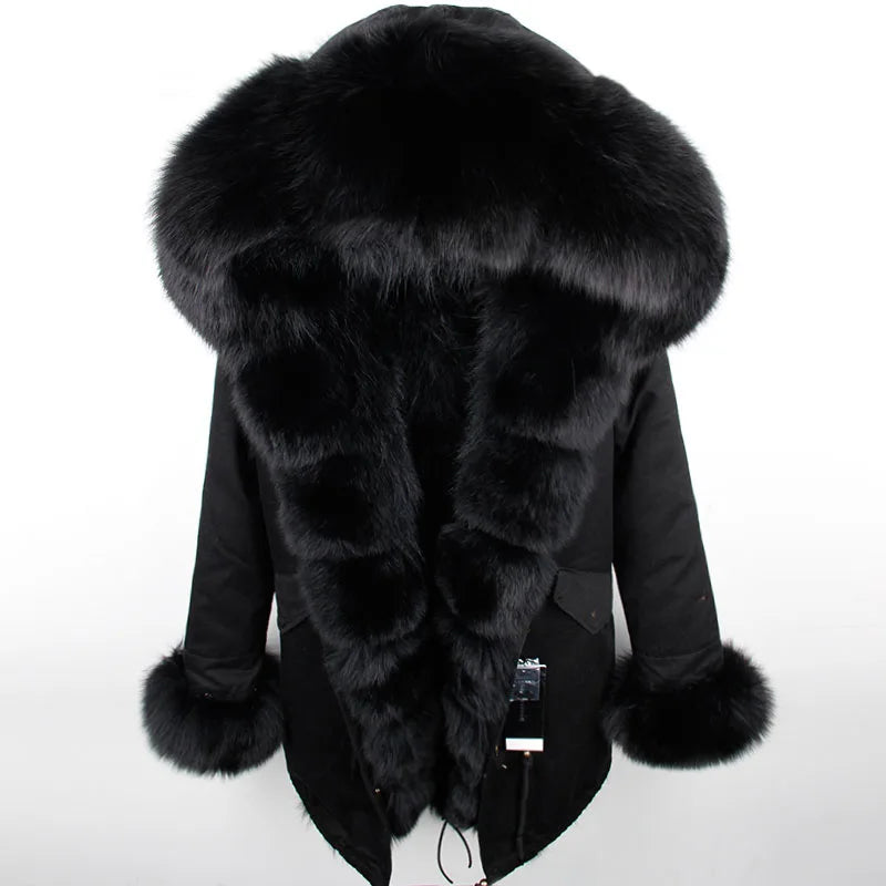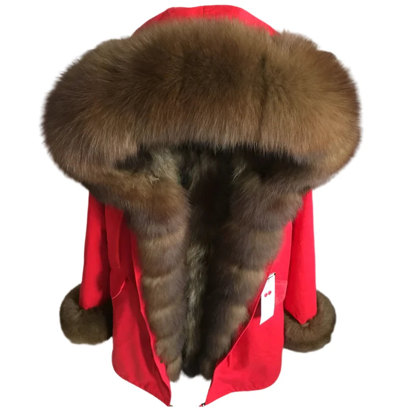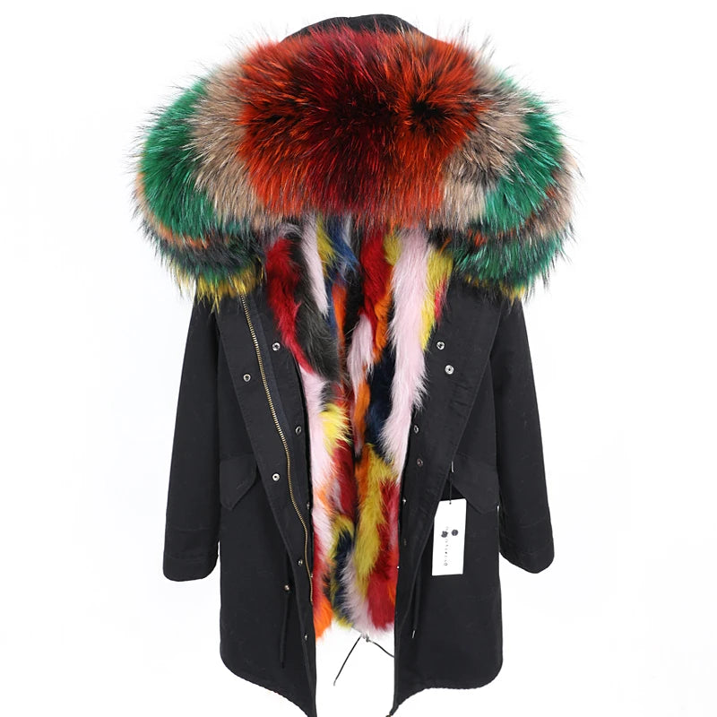 Women's Thick Fur Winter Coat with Real Fur Lining - Long Fox Fur & Raccoon Fur Collar | Hooded & Waterproof