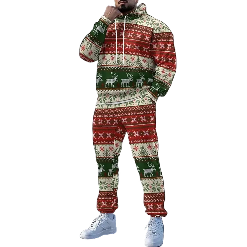Men’s Christmas Tracksuit Set – Santa Claus 3D Print Hoodie & Sweatpants, Casual Holiday Outfit, Autumn Winter X’mas Clothing