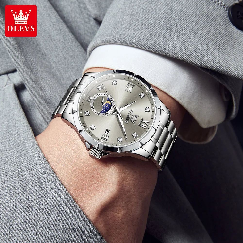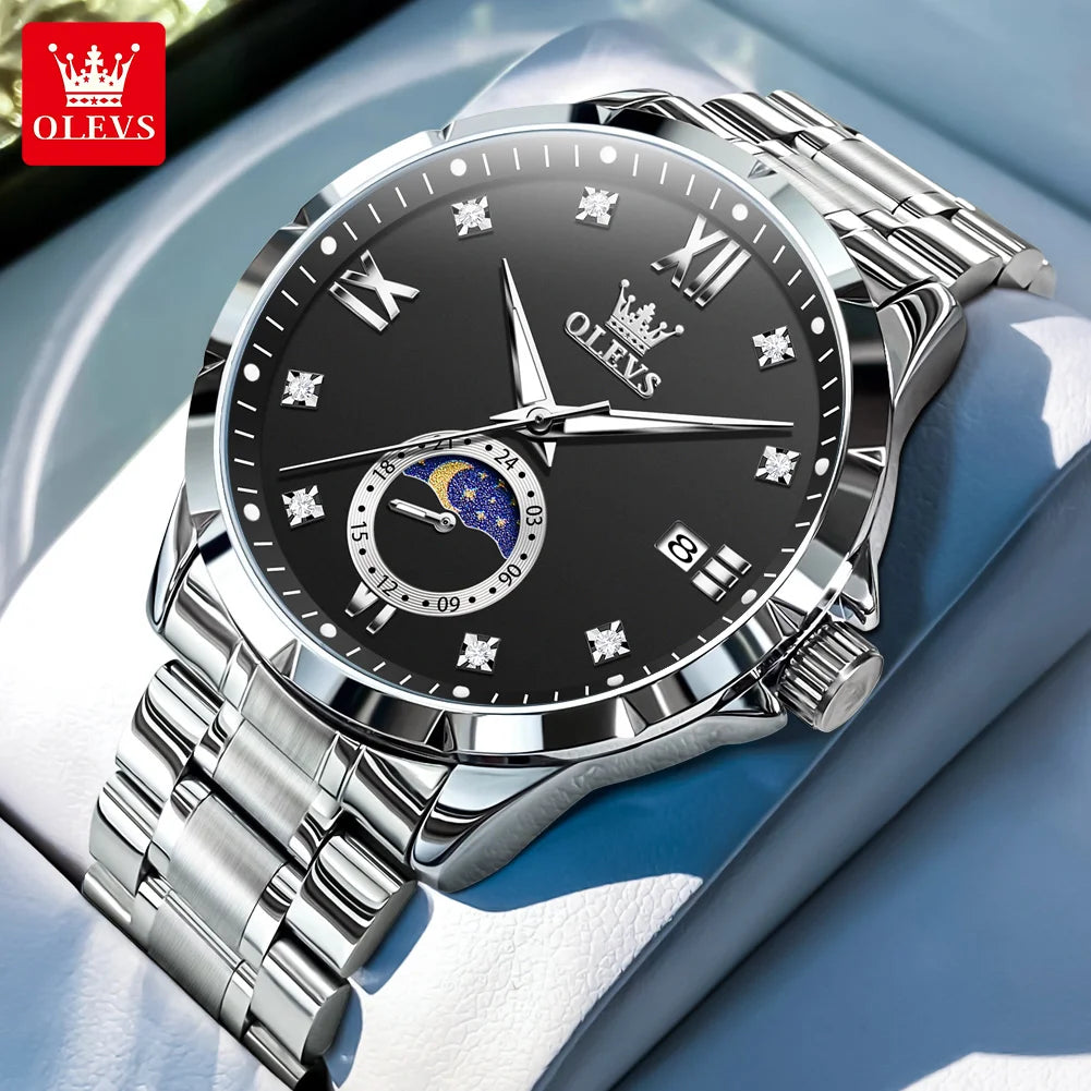 Men’s Luxury Business Quartz Watch – Waterproof Fashion Wristwatch with Date & Moon Phase Display