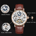 Men’s Luxury Rose Gold Skeleton Tourbillon Automatic Mechanical Watch combines cutting-edge engineering with exquisite design. Featuring a mesmerizing skeleton dial, luminous hands, moon phase display, and multiple time zone functionality, it’s perfect for luxury watch enthusiasts and professionals alike. Crafted with high-quality materials and waterproof capabilities, this wristwatch is a statement of style, sophistication, and mechanical mastery.