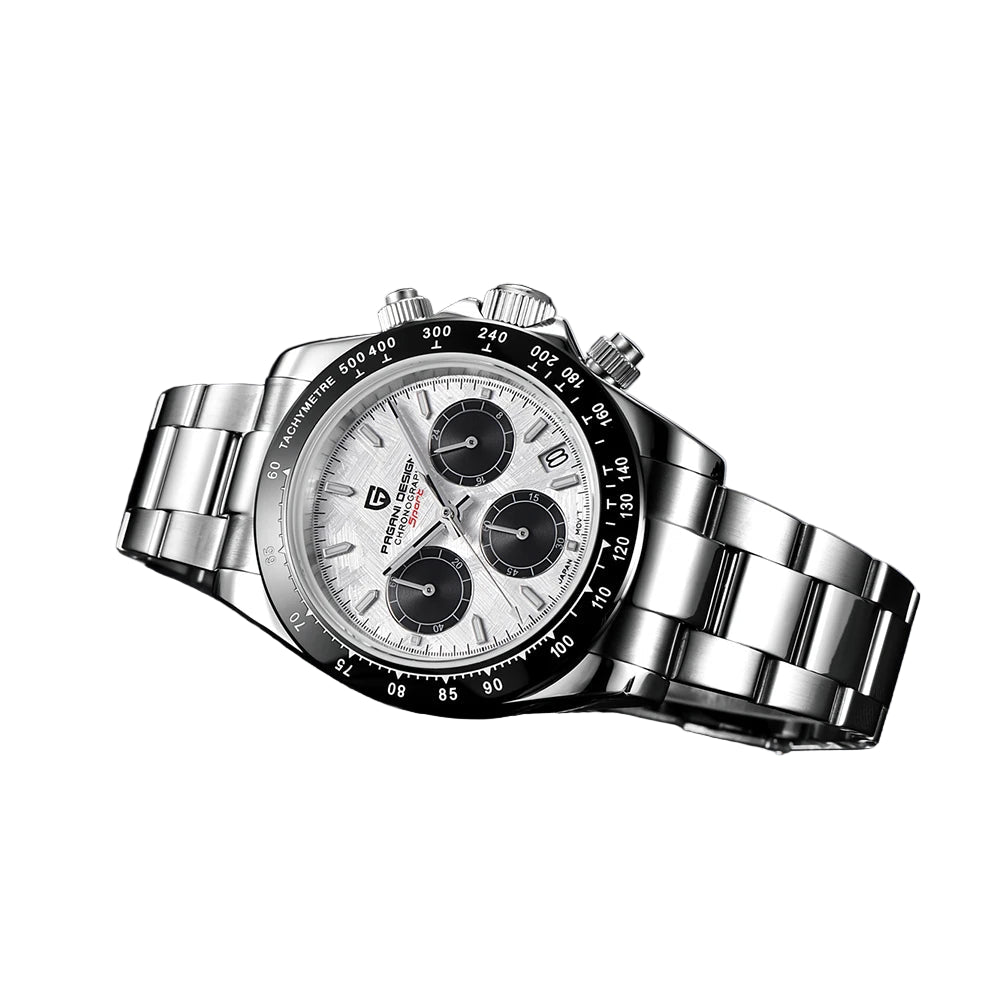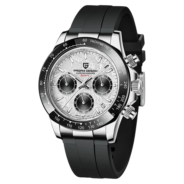 Men’s Quartz Chronograph Watch – Meteorite Dial, Sapphire Glass, 100M Water Resistant Luxury Branded Wristwatch