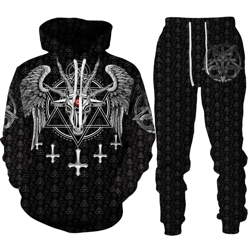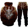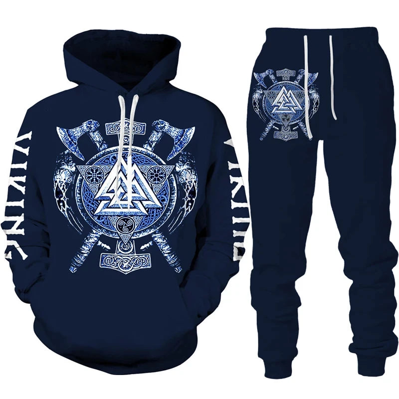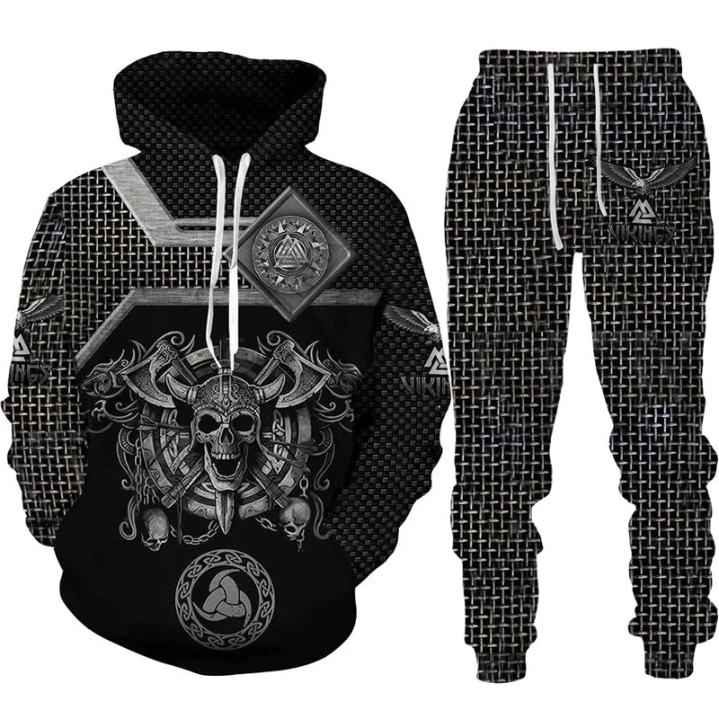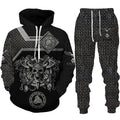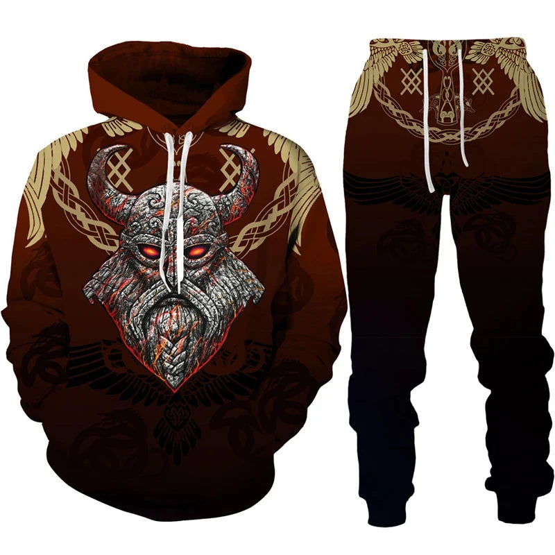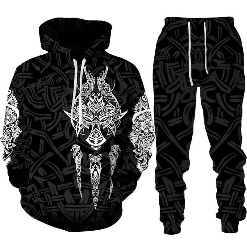 Men’s Vintage 3D Viking Tracksuit Set – Hoodie & Pants, Unisex Casual Sportswear Outfit
