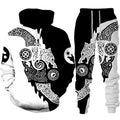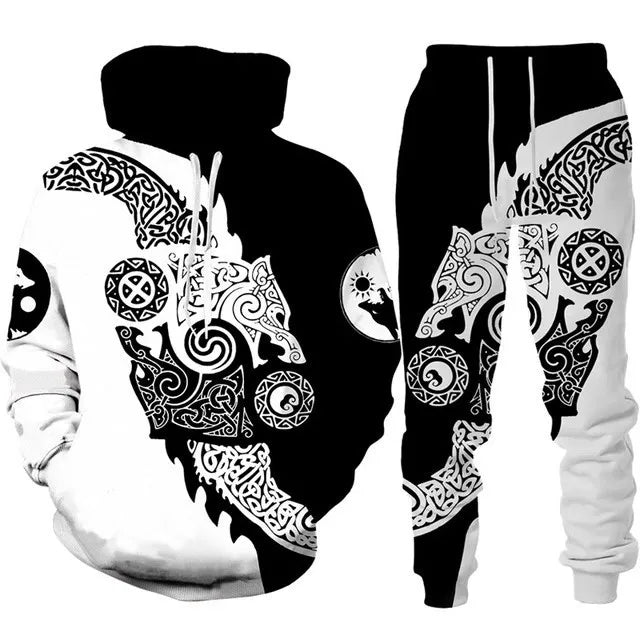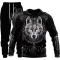 Men’s Vintage 3D Wolf Viking Tracksuit Set – Hoodie & Pants, Unisex Animal Print Sportswear Outfit