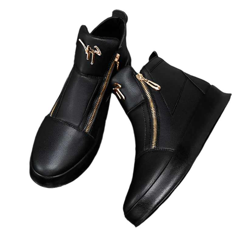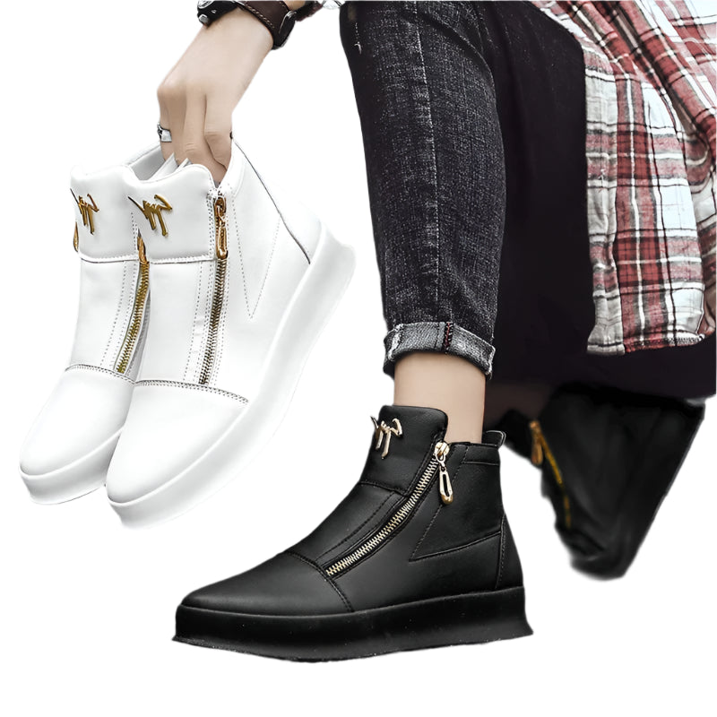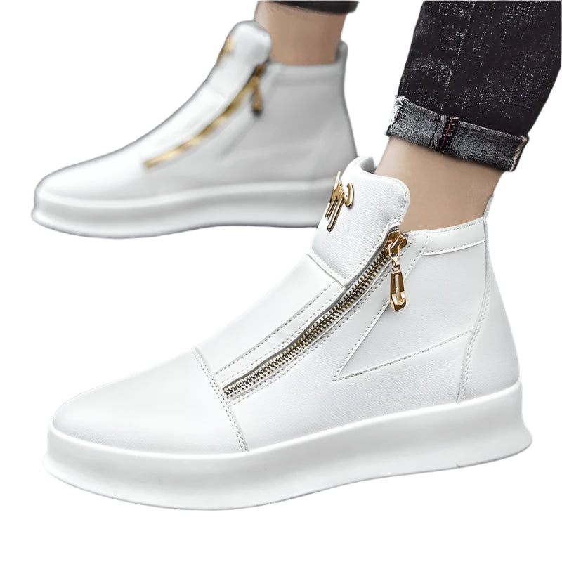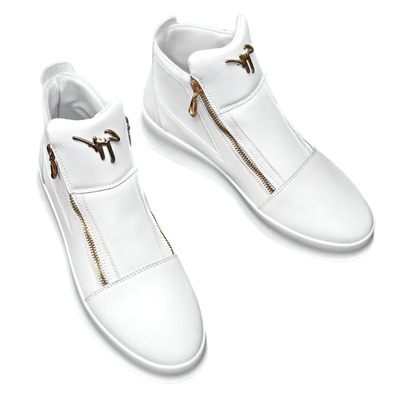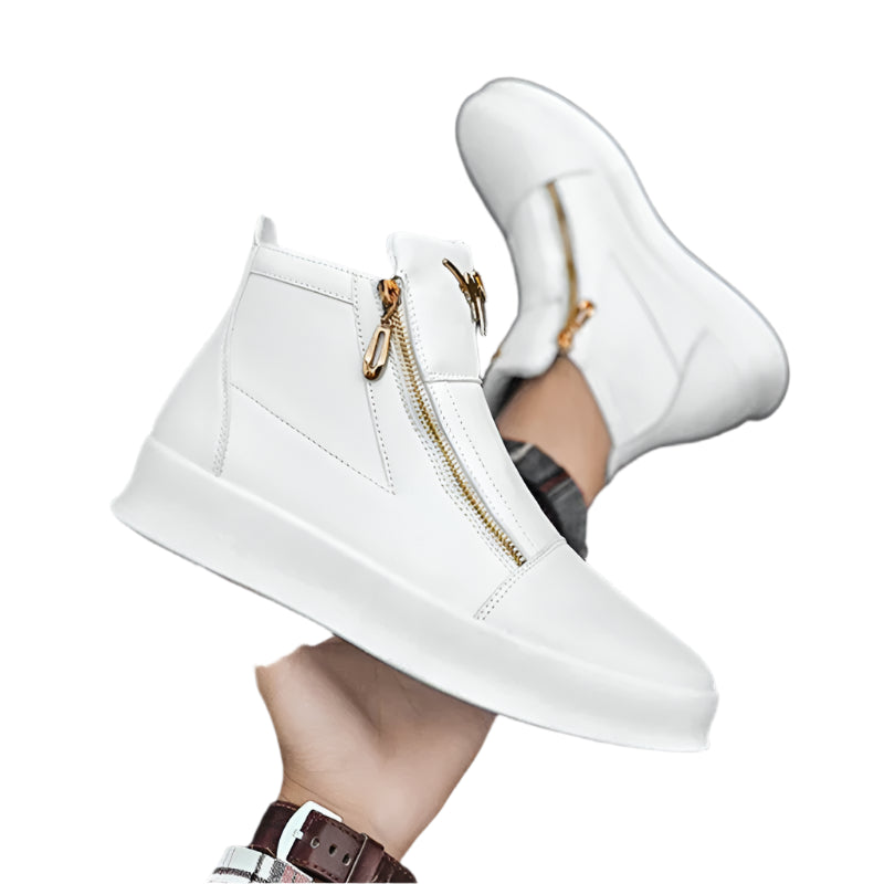 Men’s White Leather High-Top Sneakers – Luxury Platform Skate Shoes for Sport & Street-Style Fashion