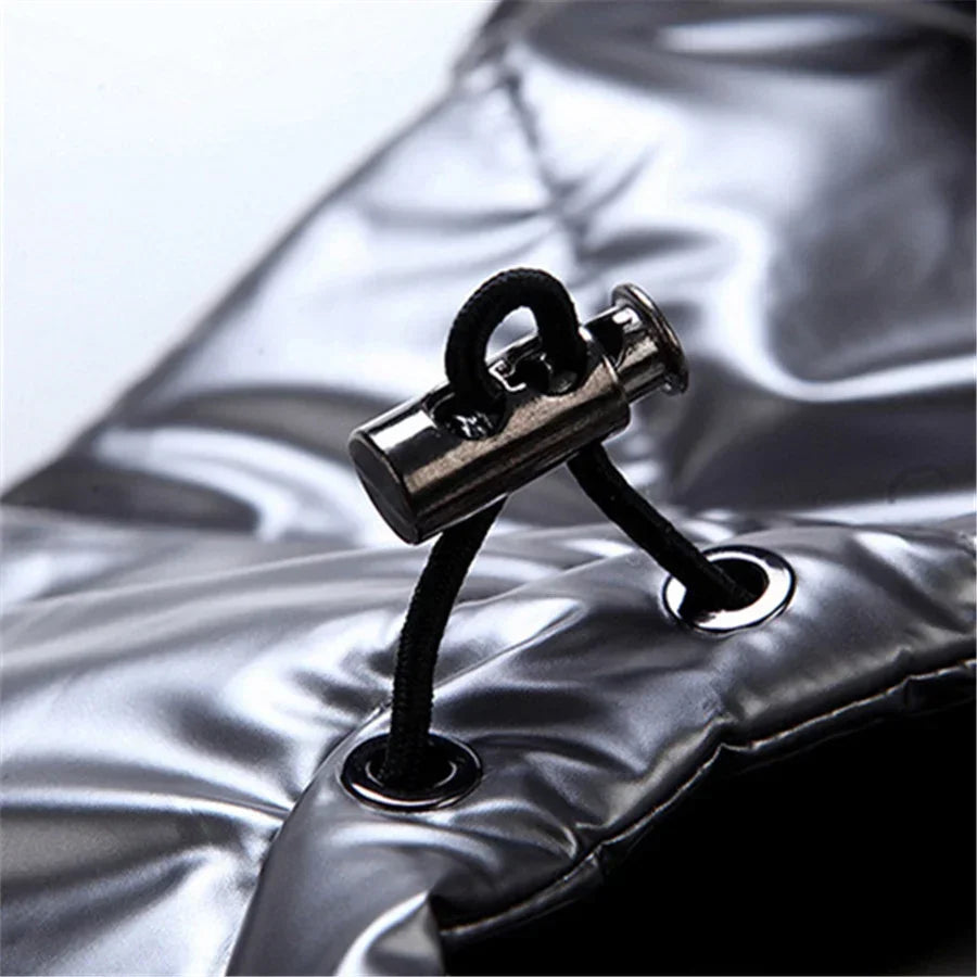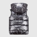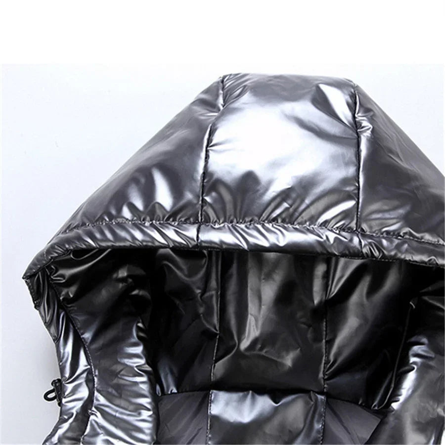 This stylish, glossy hooded vest is designed for warmth and water resistance, making it perfect for autumn and winter wear. With a padded, thickened construction and casual look, it serves as both a practical layer and fashionable outerwear.