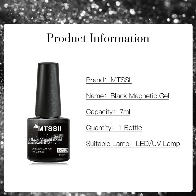 Brand: MTSSII Type: Glitter Magnetic Gel Color: As shown in the picture Quantity: 1 PC Capacity: 7ml Suitable Lamp: UV Lamp or LED Lamp Needed: Magnetic Stick/Base Gel/Super Top Coat