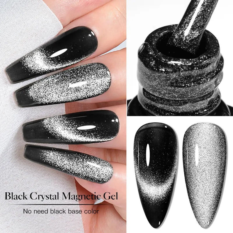 Experience the magic with our 9D Black Crystal Cat Magnetic Gel Nail Polish! Transform your nails with sparkling glitter chameleon semi-permanent soak-off gel varnish. Elevate your nail art game today! #NailArtEssentials #SparkleAndShine