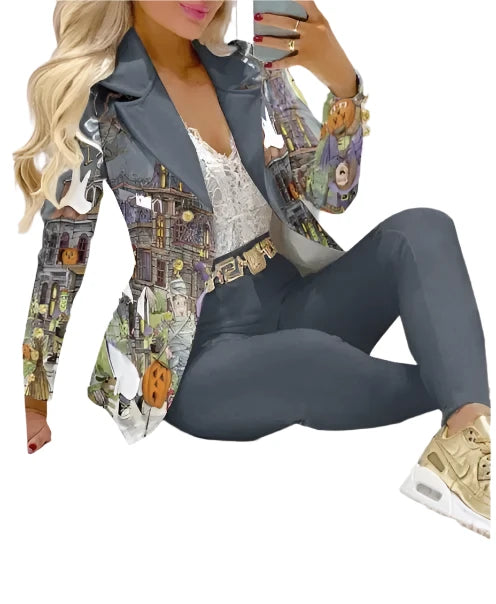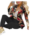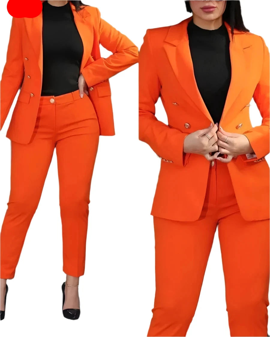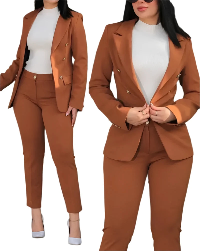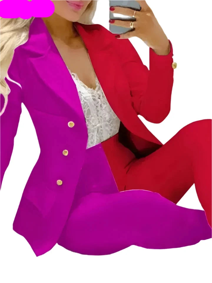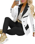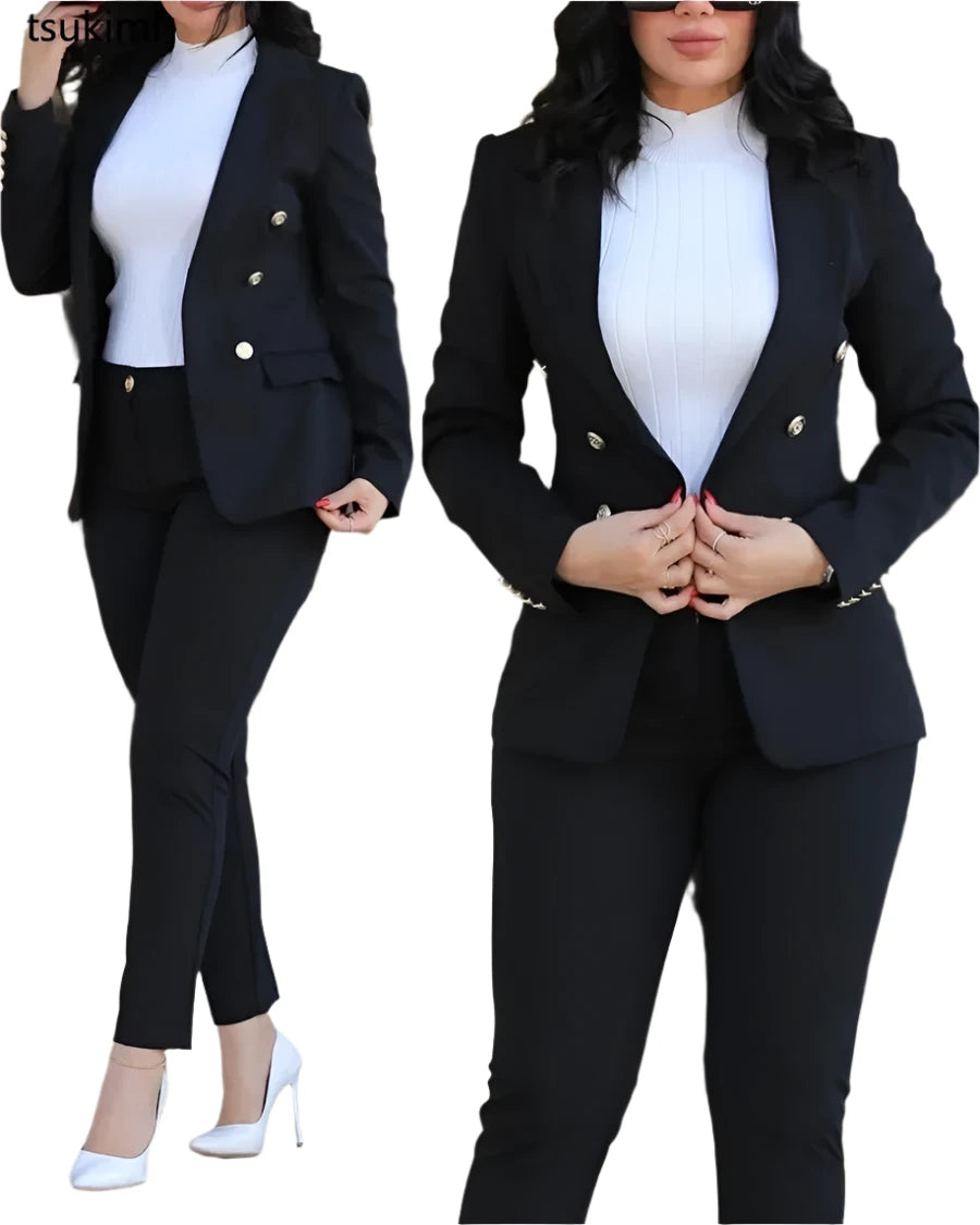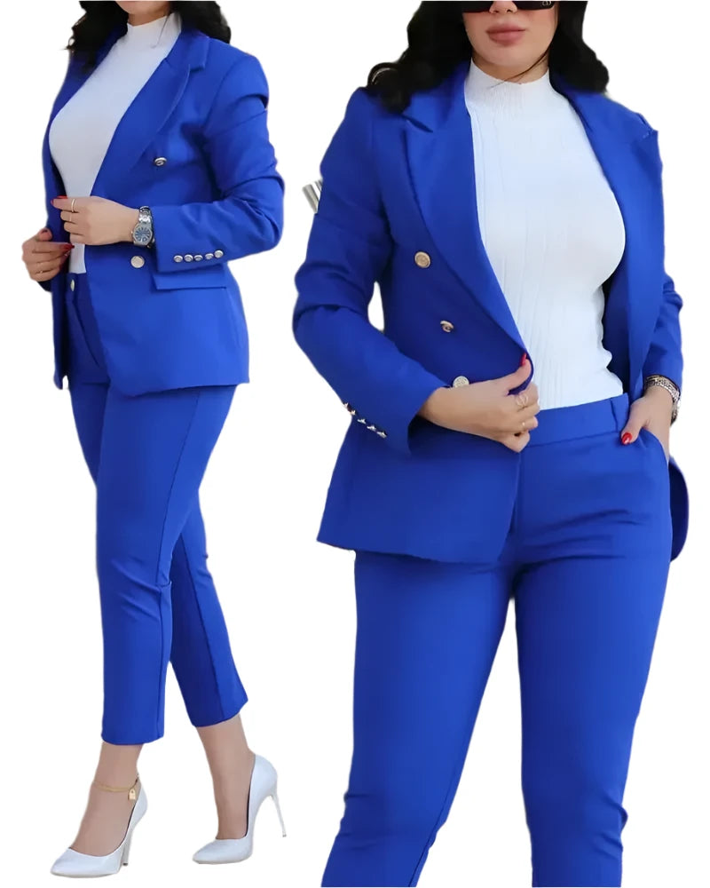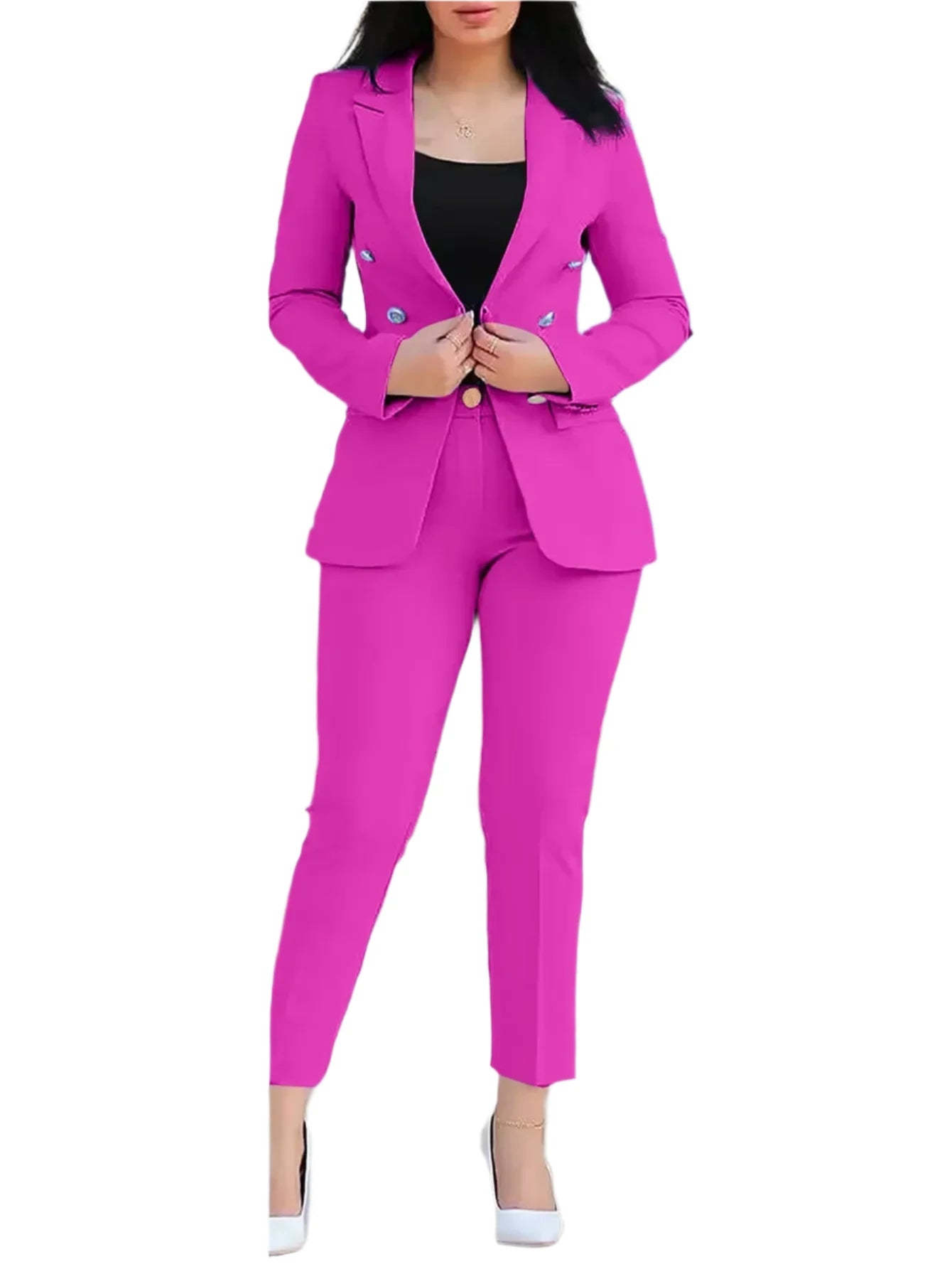Women's Business Office 2-Piece Suit featuring a stylish blazer jacket and tailored pants. Designed for elegance and comfort, this outfit is perfect for office wear, formal events, or casual business occasions.