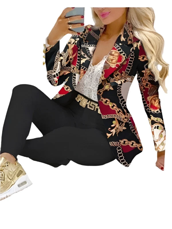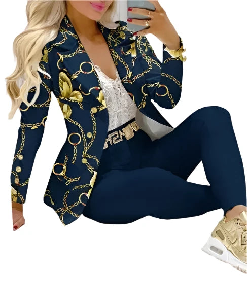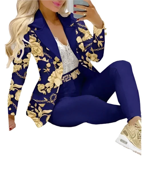 Upgrade your wardrobe with this elegant and versatile 2-piece suit that combines fashion and function for today’s modern woman.
