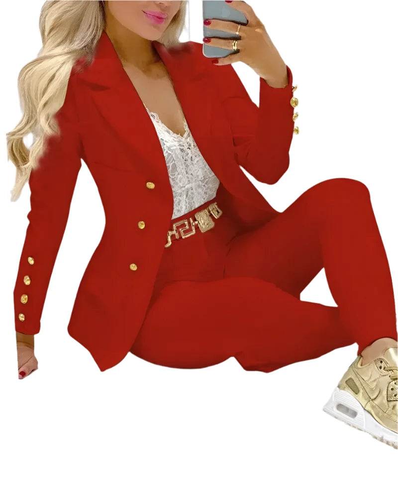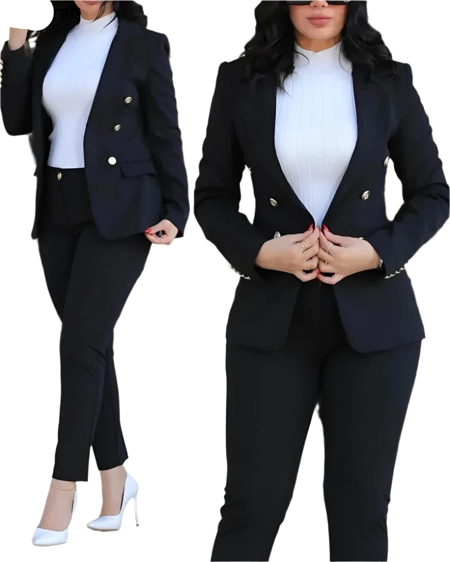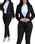 Women's 2-Piece Office Pants Set - Elegant Business Blazer Suit with Lapel Collar & Slim-Fit Trousers for Formal or Casual Wear