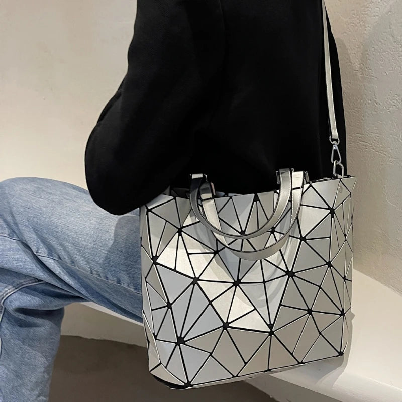 Exquisite Design: Vertical square shape with chic rhombus stitching, contrasting color accents, and spliced detailing for a modern, stylish look.