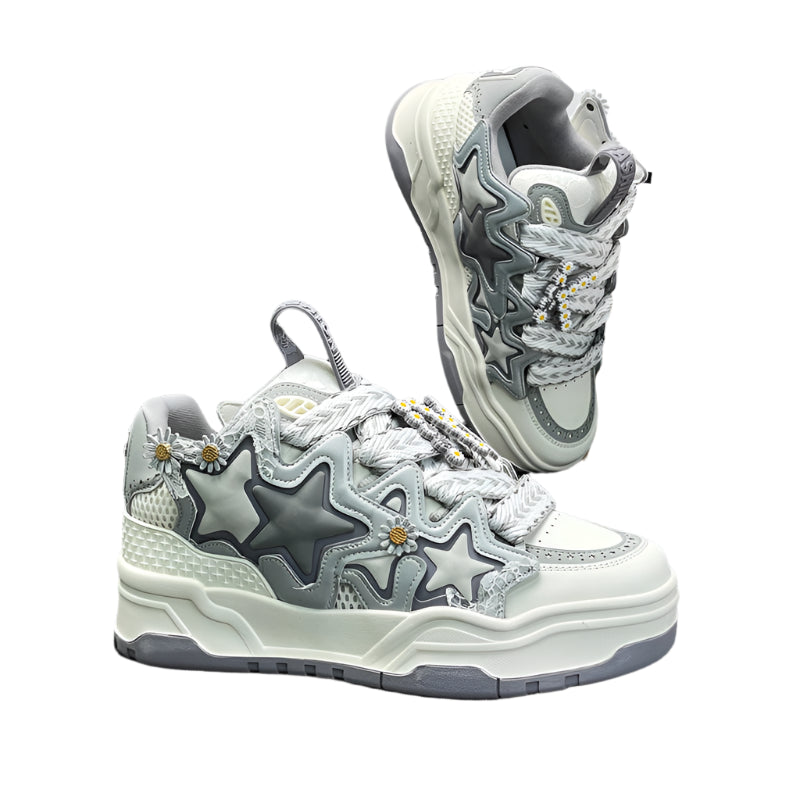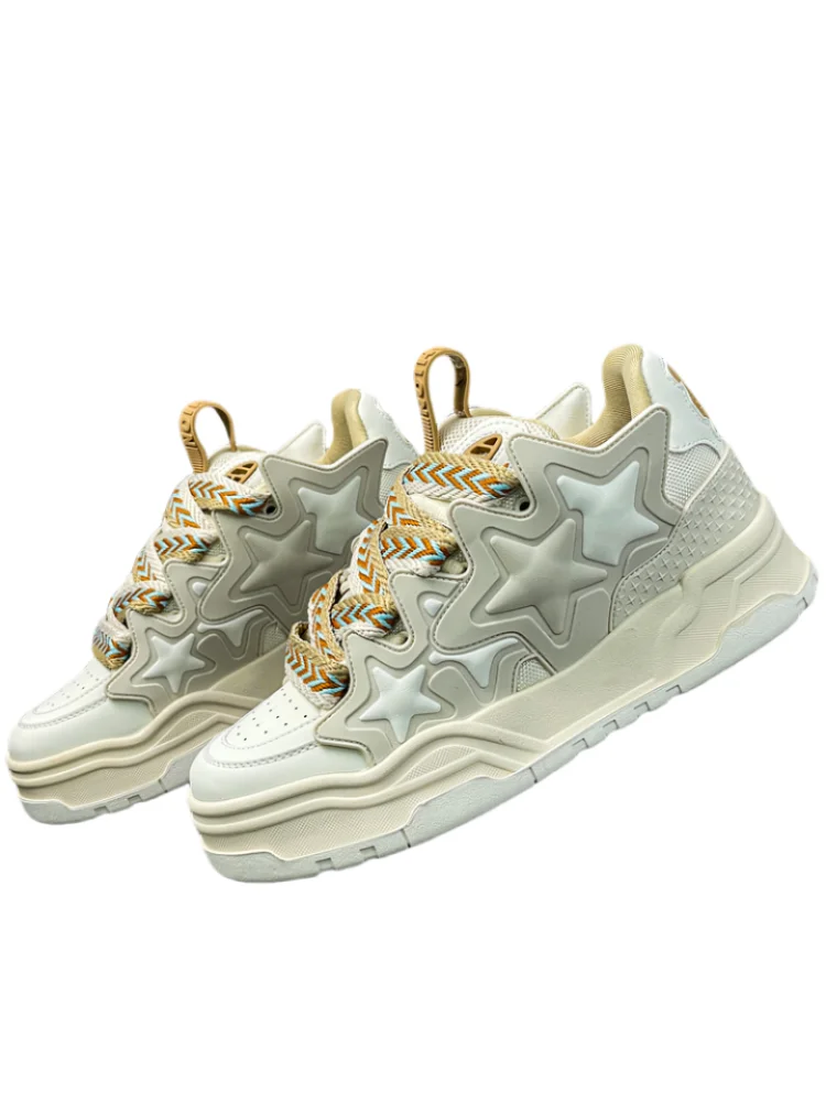 Off-White Star Platform Sneakers – Trendy Casual Shoes for Men & Women | Niche Couple Streetwear Trainers | National Tide Board-Style Fashion