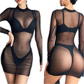 Plus Size Sheer Mesh Lingerie Dress | Sexy See-Through Long Sleeve Nightgown & Clubwear for Women