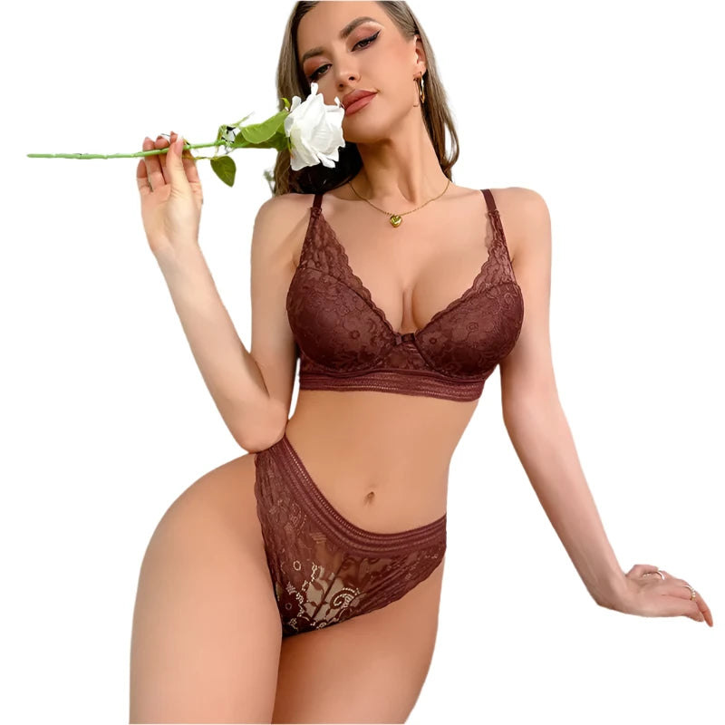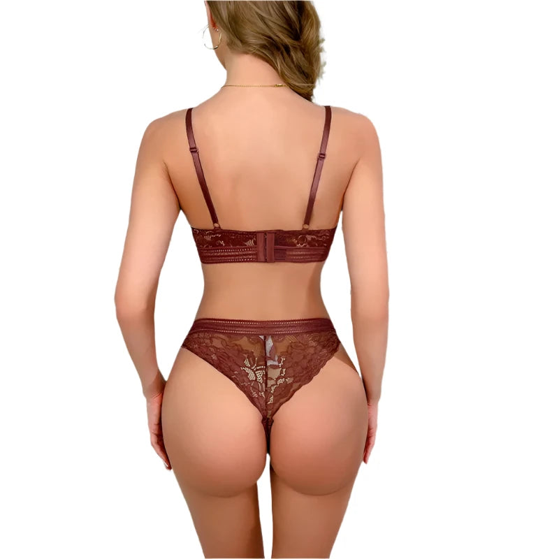 Designed with an anti-sagging underwire for added support, this sexy piece features a hollow-out lace pattern and a comfortable, adjustable fit. Ideal for everyday wear or a special occasion, this lingerie set offers both style and functionality.