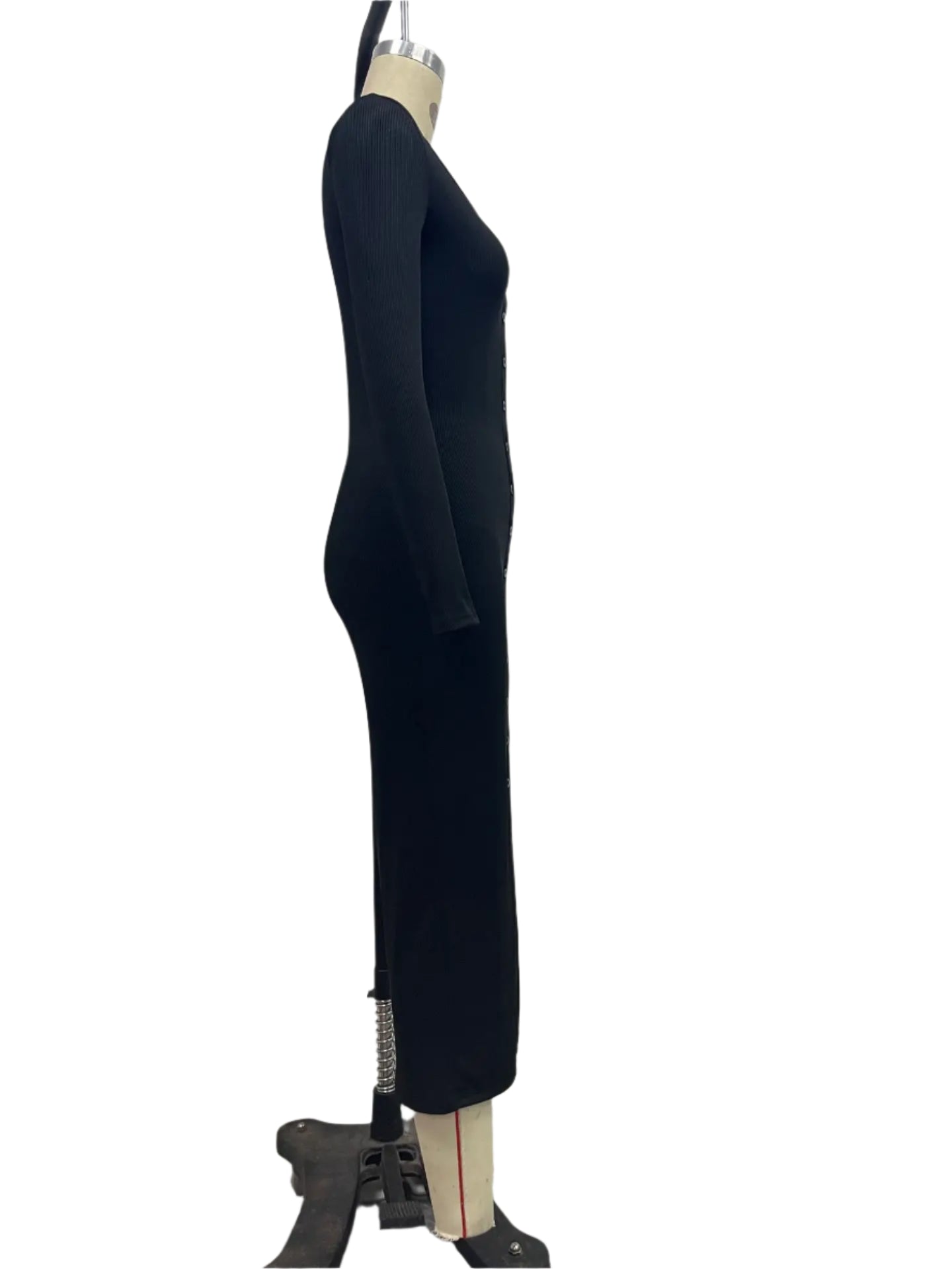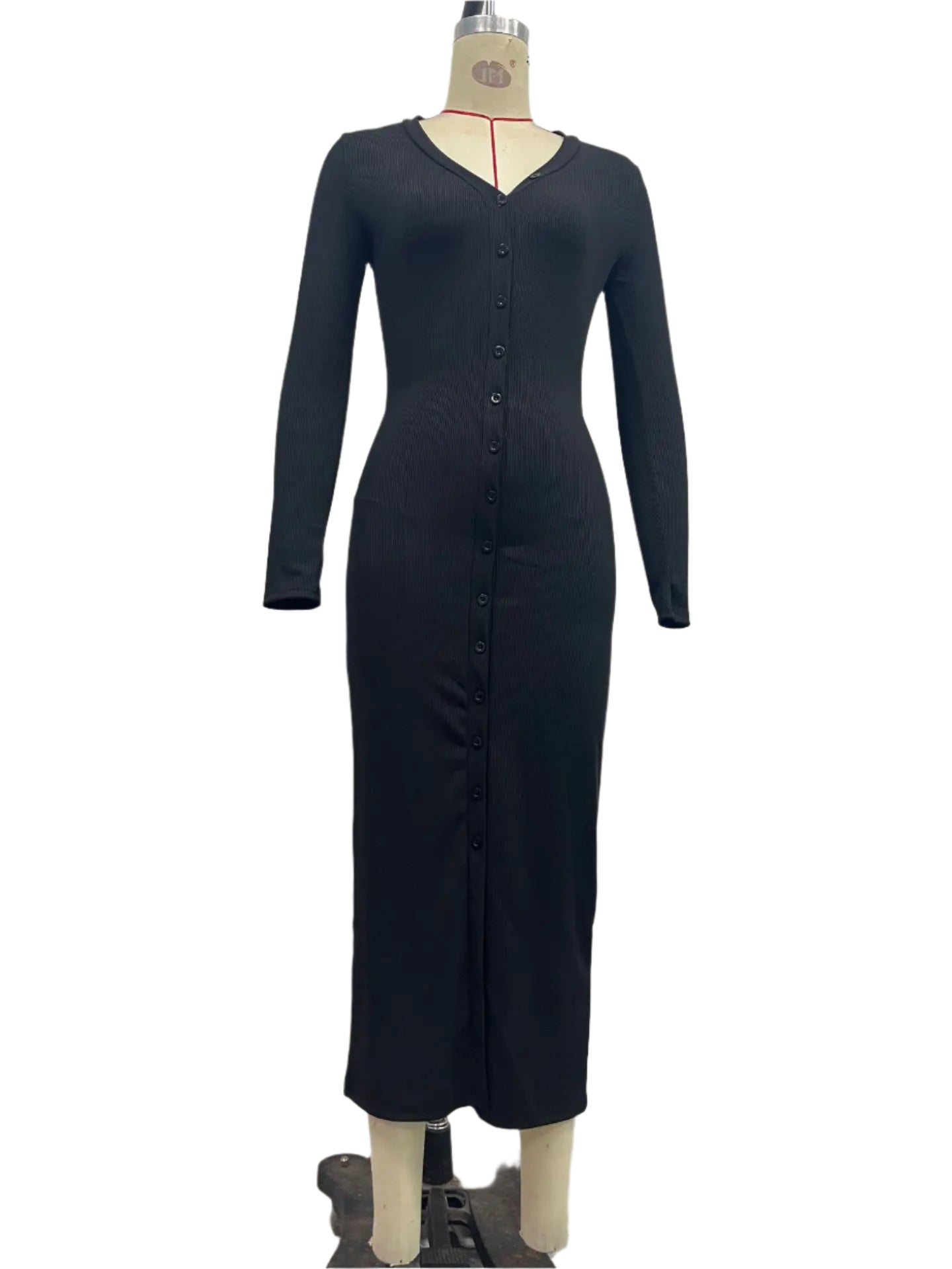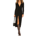 Spring Sexy V-Neck Long Sleeve Knitted Wrap Dress - Slim Fit Single Breasted Solid Color Party Maxi Dress
