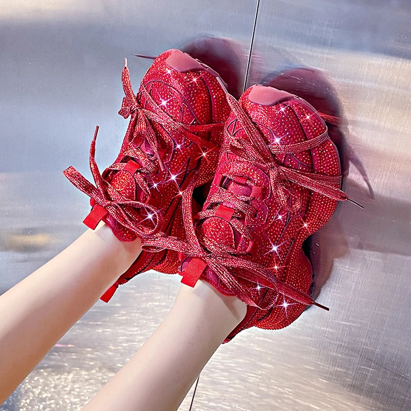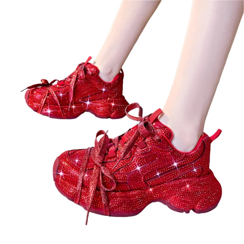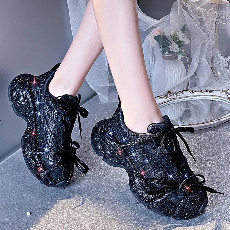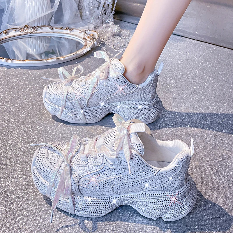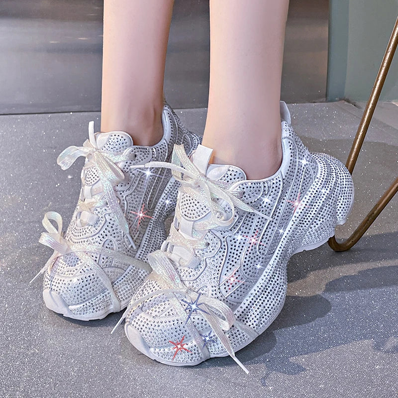 Women's Luxury Bling Platform Sneakers – High-Quality Fashion Lace-Up Tennis Shoes for Running & Outdoor Casual Wear