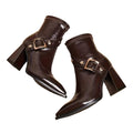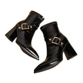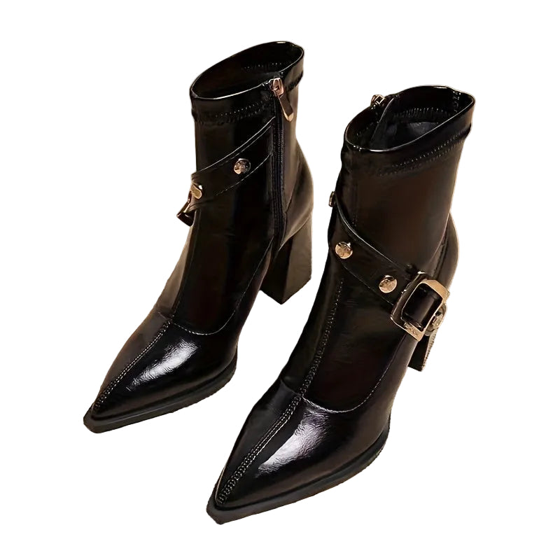 Women’s Belt Buckle High Heel Ankle Boots. Designed for elegance, comfort, and everyday wear. Featuring a slim pointed toe, side zipper, and mid block heel, these boots offer a chic silhouette perfect for autumn and winter 2026 fashion, casual outings, and dressy occasions.