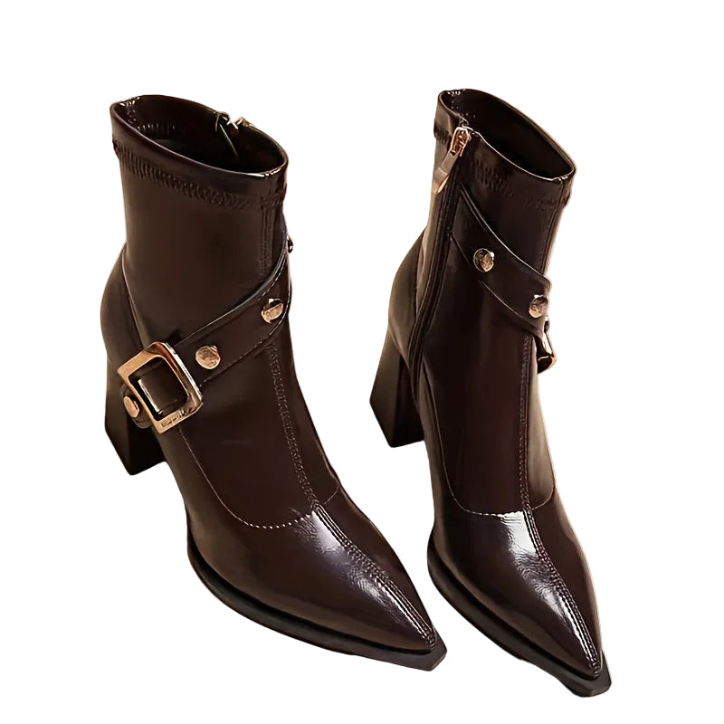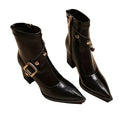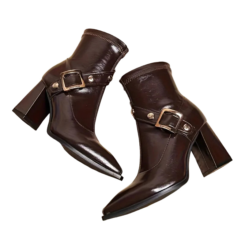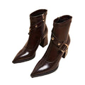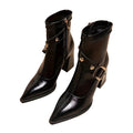 Women’s Belt Buckle High Heel Ankle Boots – 2026 Autumn Winter Slim Pointed Toe, Side Zipper Elegant Boots