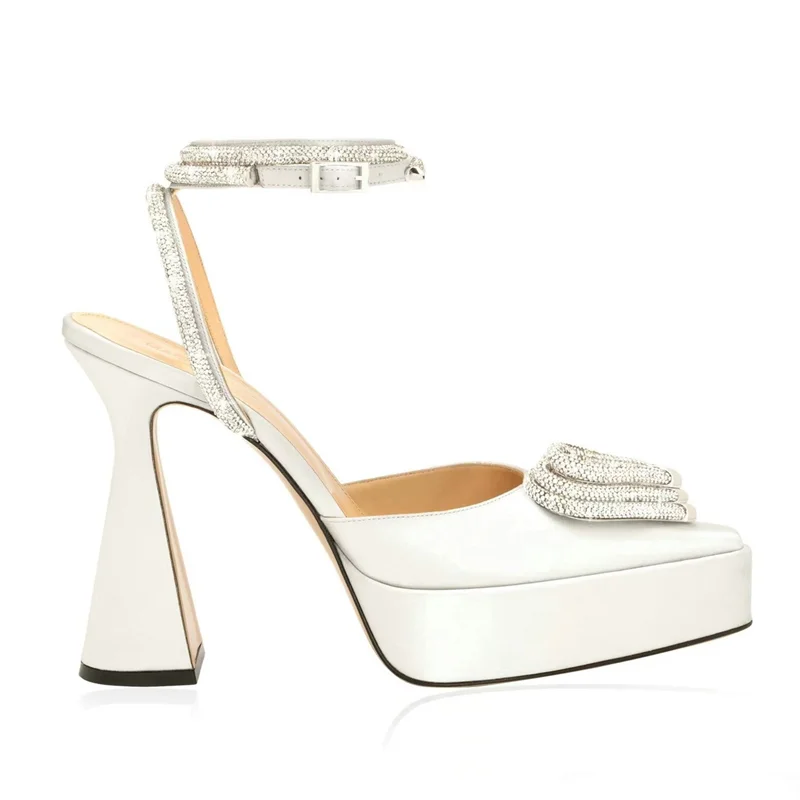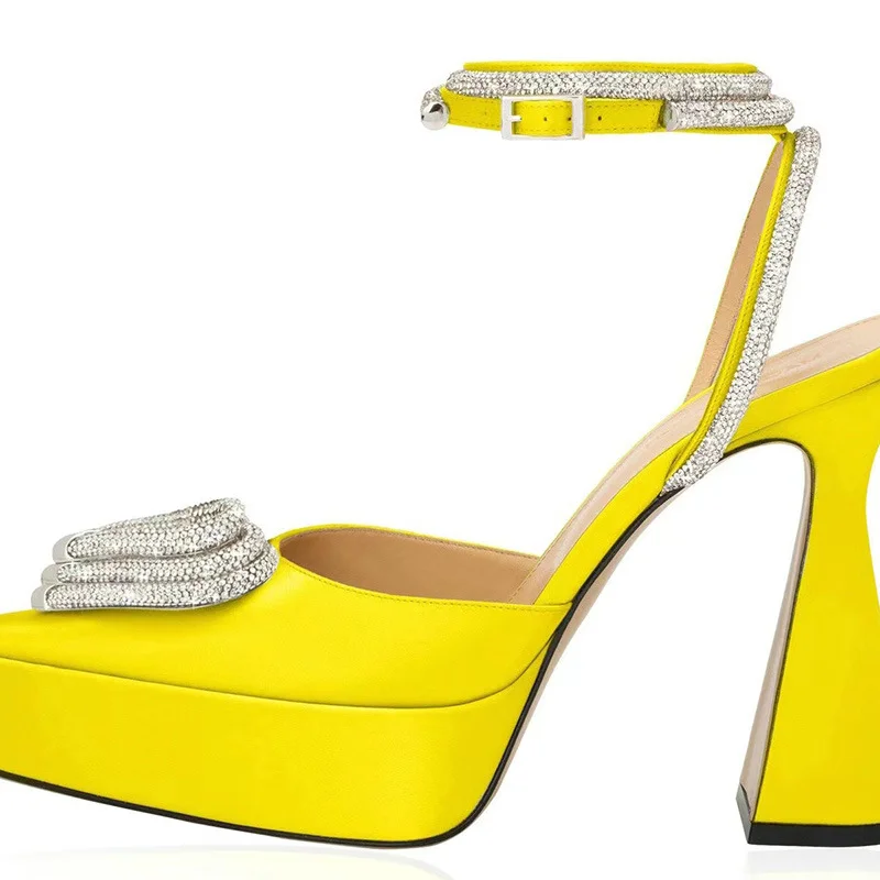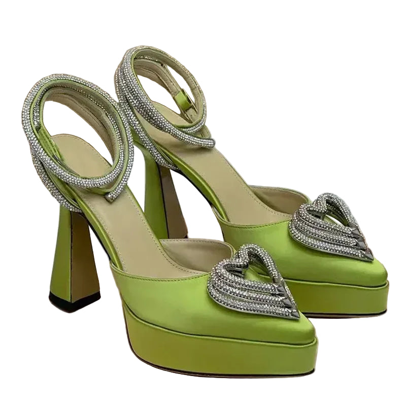 Step into elegance with these crystal-decorated platform sandals, designed to add modern glamour to any outfit. Featuring a sleek pointed toe, spike heel, and secure ankle buckle strap, these heels are perfect for formal events, nights out, or stylish everyday wear. Made with genuine leather and a durable rubber sole, they deliver both beauty and comfort in every step.